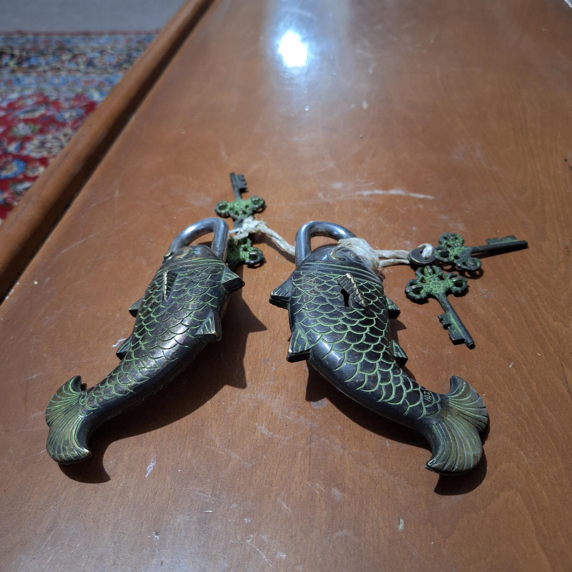 دوعدد قفل قدیمی ماهی شکل سالم هر کدام بادوعدد کلید 4ملیون هر عدد دو ملیون