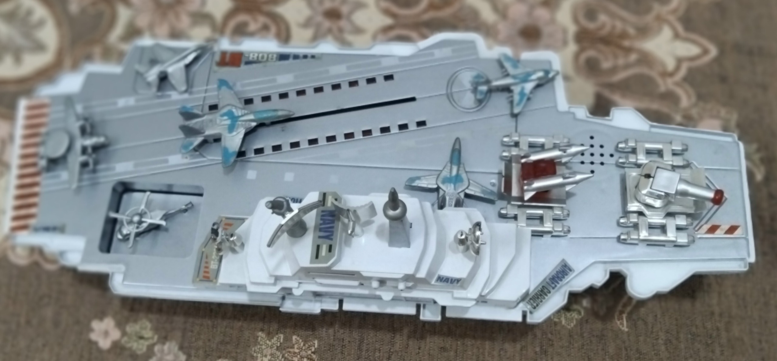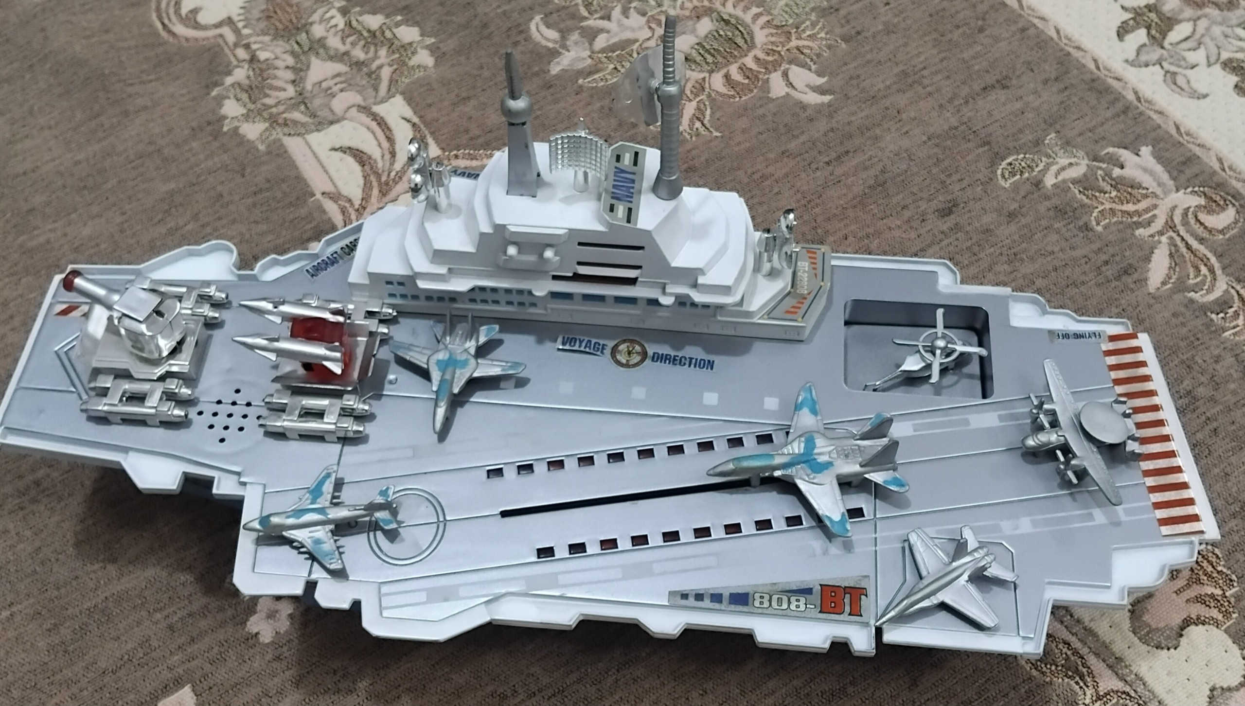 فوق العاده زیبا و منحصر بفرد قدیمی حدود 30 سانت طول در حدود 10 سانت عرض ، یک هواپیما ، یک رادار و هر دو ضد هوایی حرکت میکنند،  دارای صدای آژیر خطر و شلیک تیر و چراغدار  می باشد و خود ناو هم اگر در جای کاملا صاف مثل سرامیک باشد تکان میخورد، دقیقا مطابق تصاویر و توضیحات.