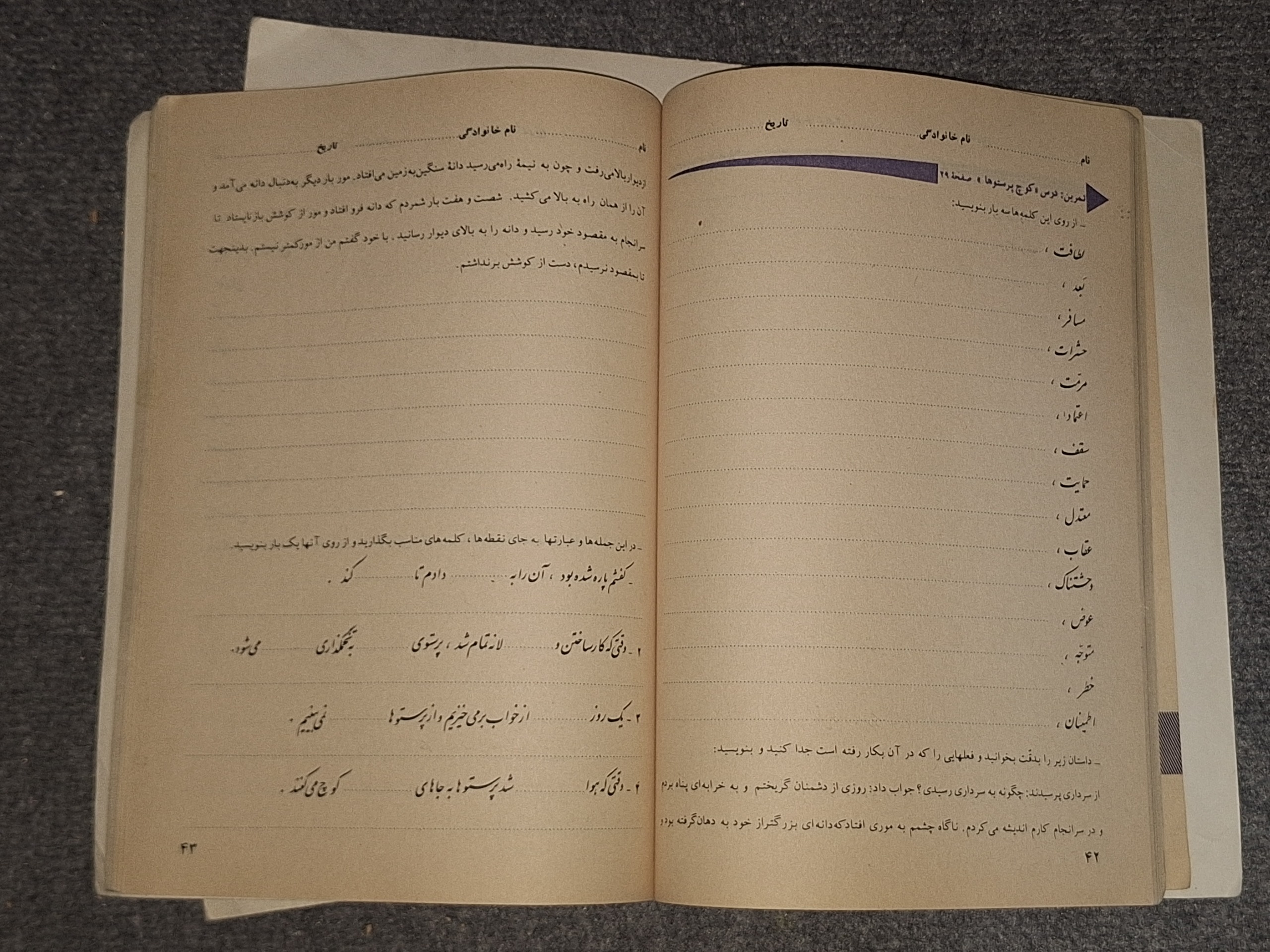 دفتر تمرین فارسی چهارم دبستان قبل از انقلاب