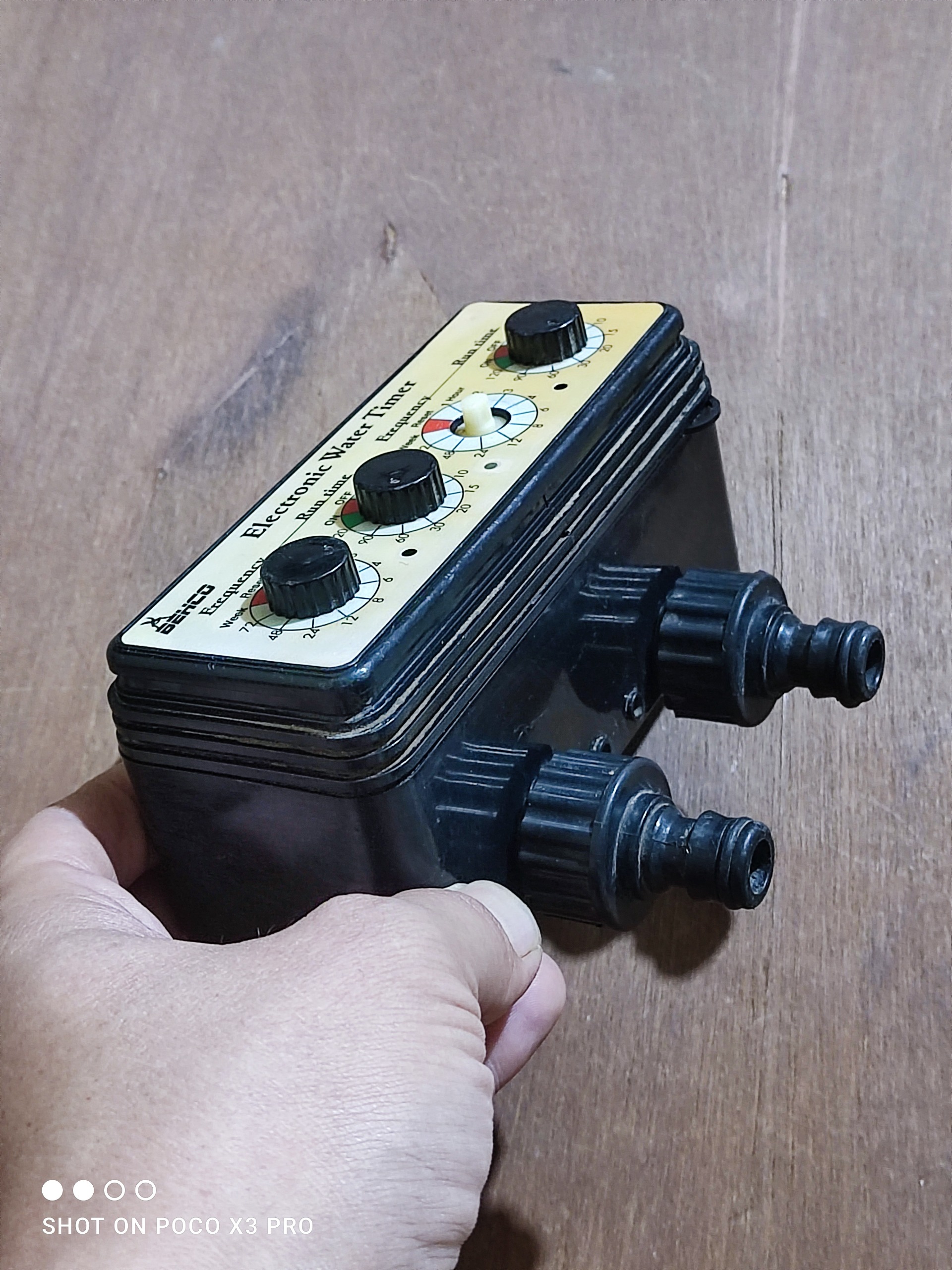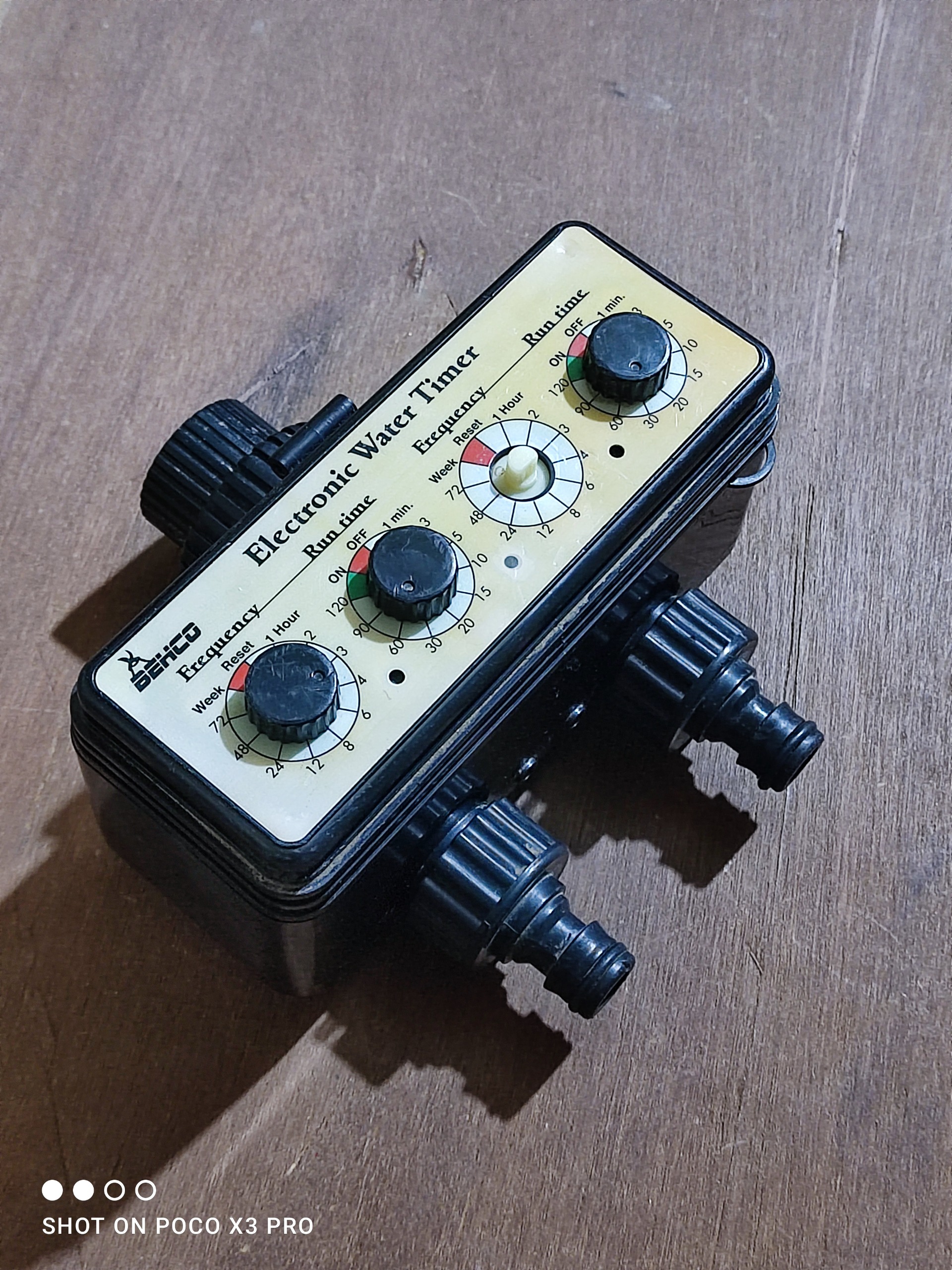یک عدد تایمر برند بهو بهش میگن تایمر آبیاری من اولین بارمه که میبینم حتی نمیدونم چجوری کار میکنه جنسش از پلاستیک خیلی خیلی محکمه دست دومه این تایمر ولی تمیز و بکره یکی از پیچاش نداره توی تصاویر مشخصه در مورد سالم بودن یا نبودن اصلا اطلاعی ندارم ولی چیز خاصی نیس که خراب بشه به هر حال یه قیمت زدم که مطابق تصاویر و توضیحات خرید کنین قیمتش بالا هست این تایمر من زیر یه تومن زدم پس همینجوری که هست خرید کنین مطابق تصاویر