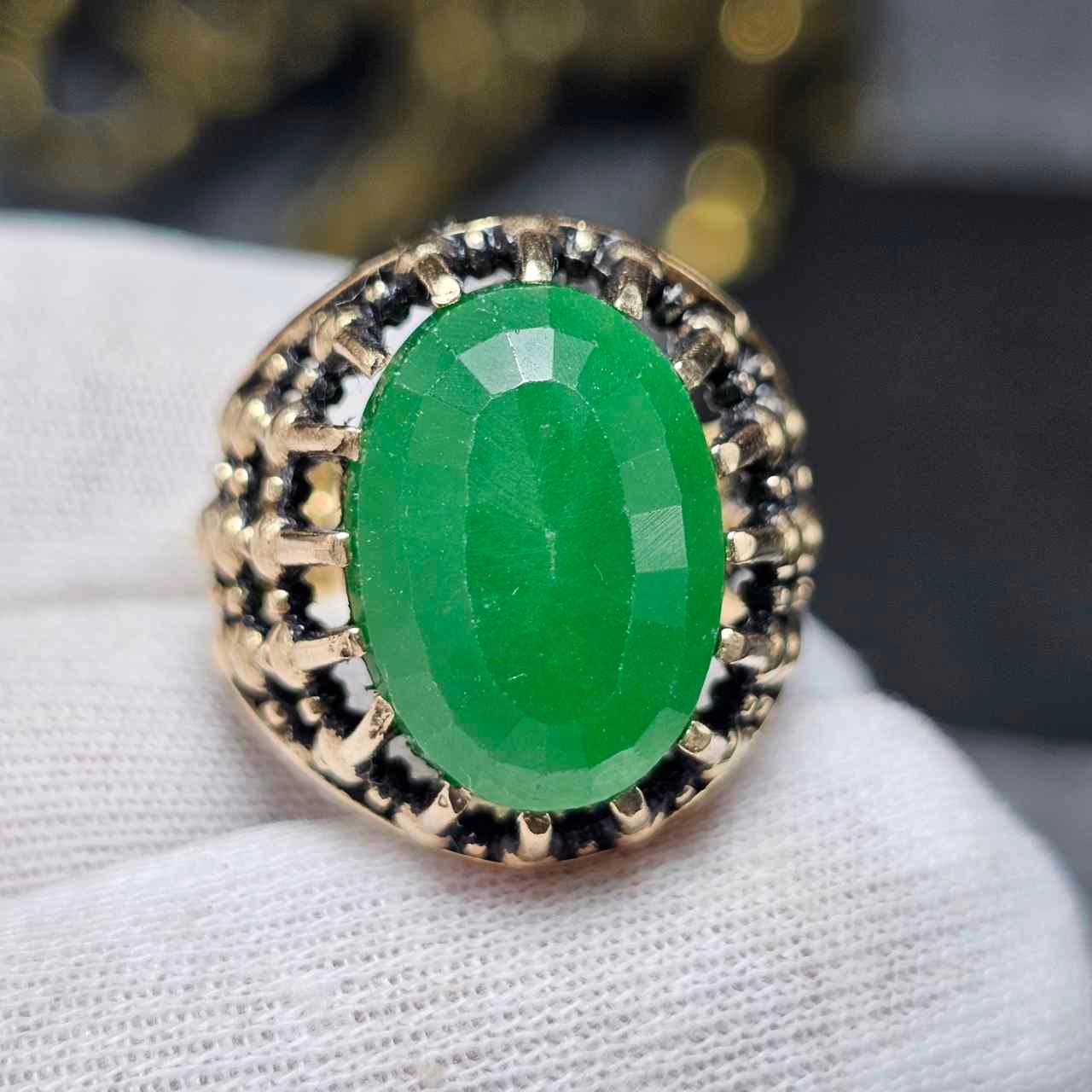 انگشتر طلا روس با سنگ جید تراش الماس کد 36562