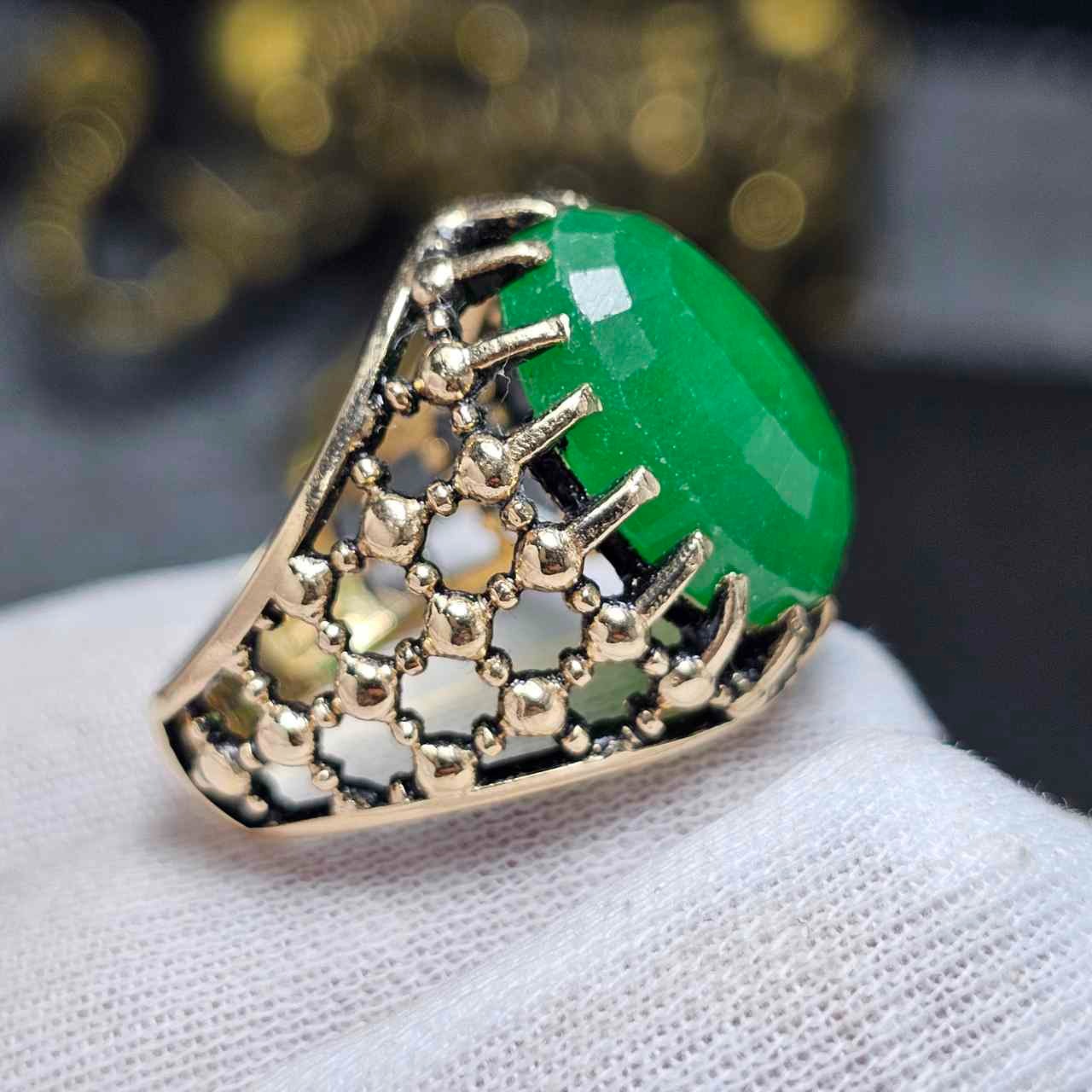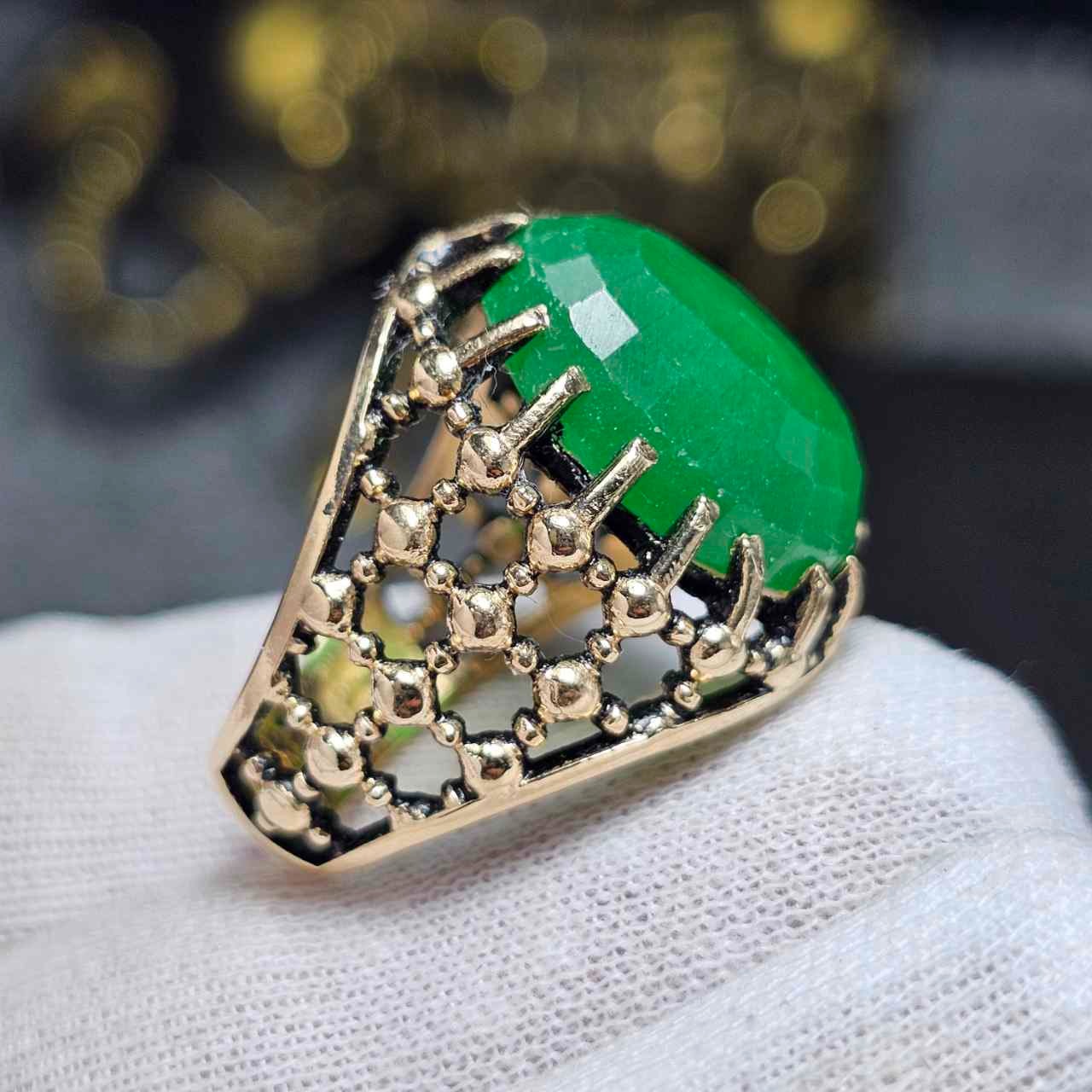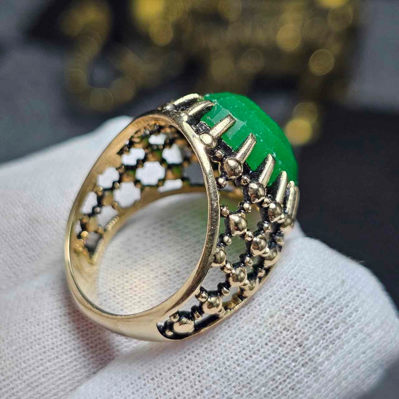 انگشتر طلا روس سنگ جید تراش الماس کد 36562