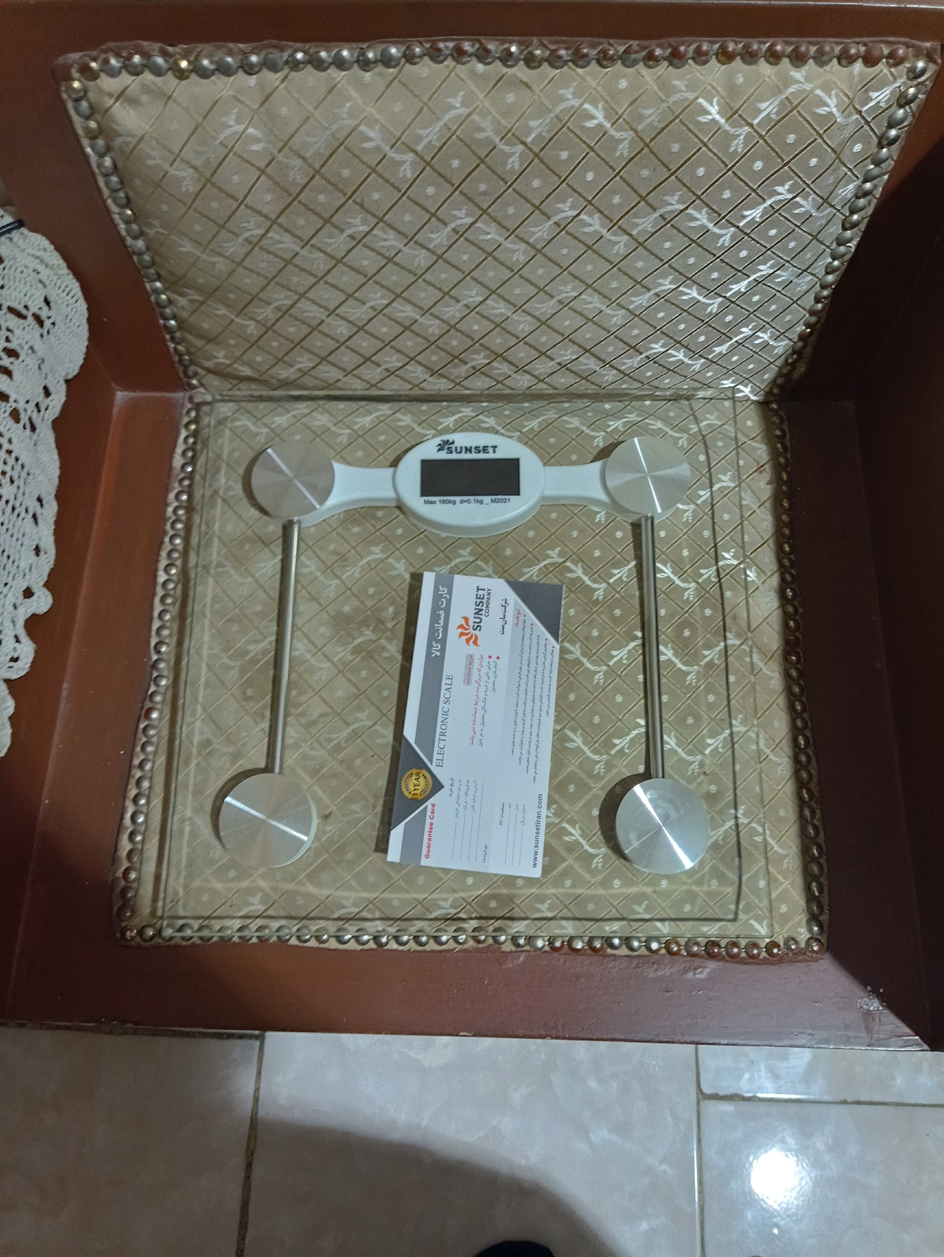ترازو وزن کشی حمامی به همراه جعبه زرد رنگ
