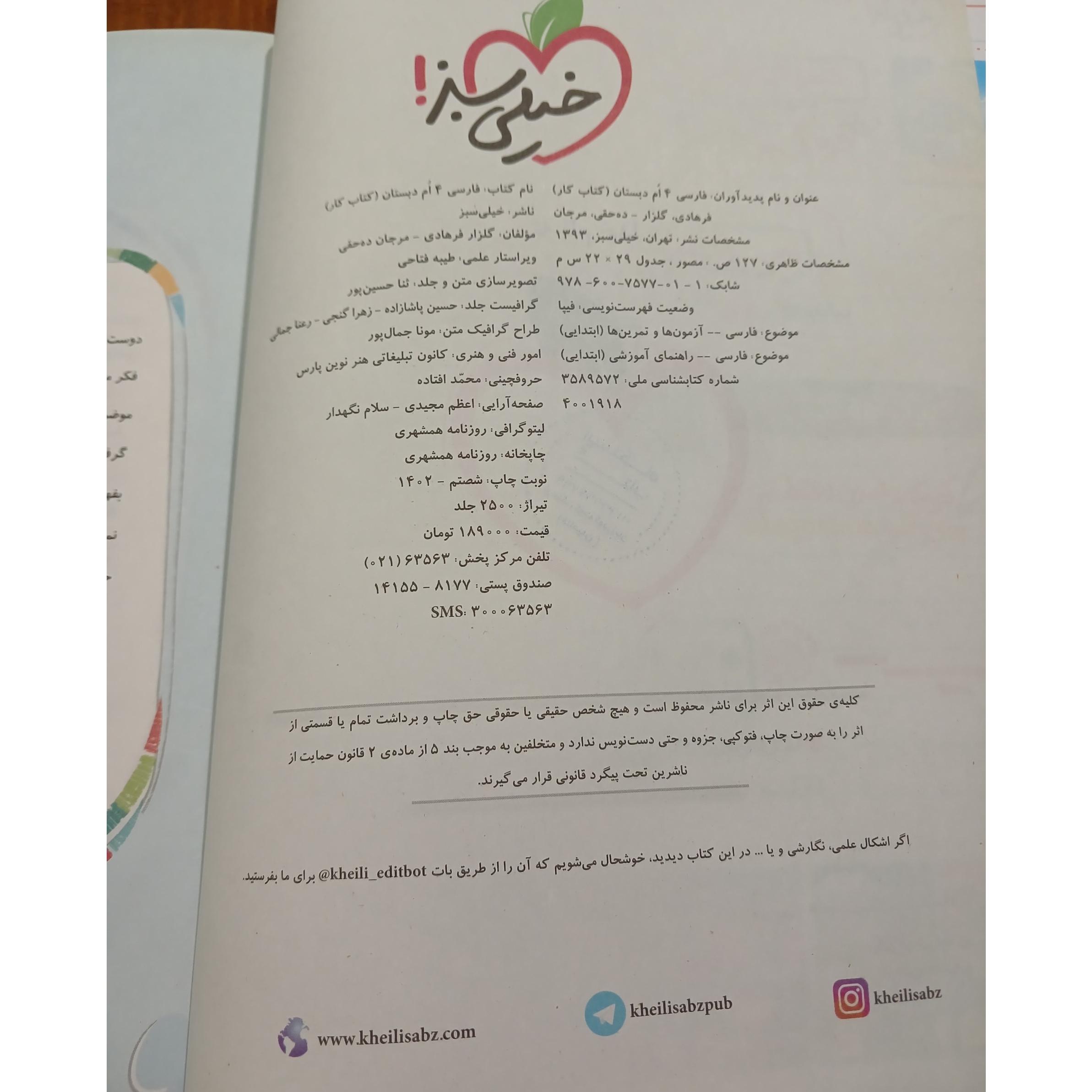 کتاب کار فارسی 4 ٱم. خیلی سبز. 1402