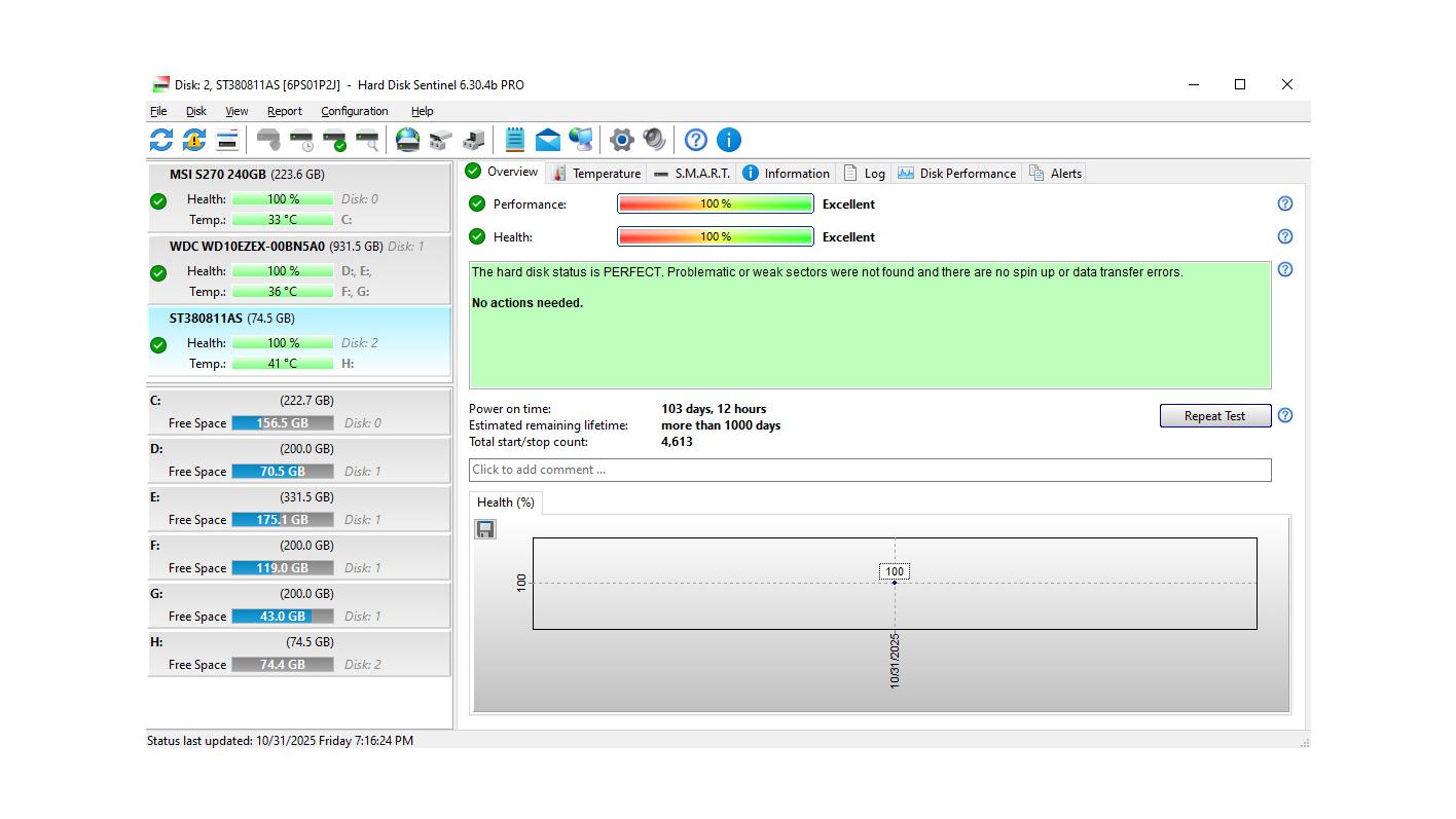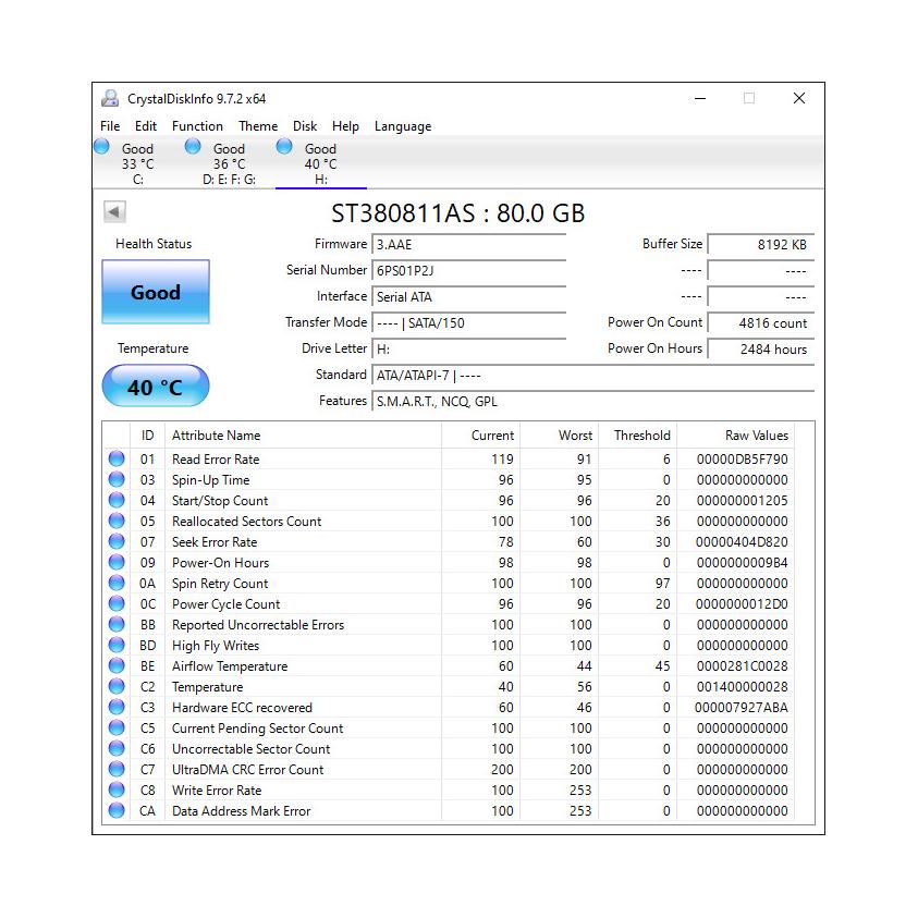 هارد 80 گیگ ساتا Seagate Barracuda (سلامت 100)
