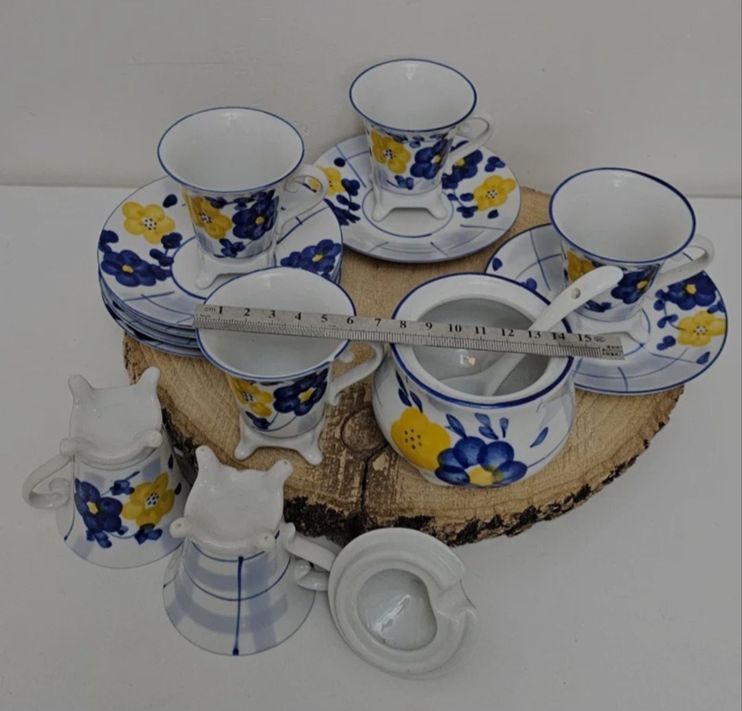 قیمت ذکرشده برای 6فنجان6نعلبکی و1شکرریز بادرب وقاشق میباشد____ست قهوه خوری کمیاب گل پنبه سایز مناسب برای اسپرسو همراه با استند ،شامل 6فنجان6نعلبکی ویک شکرریز بادرب (یک فنجان ویک نعلبکی برای دقت بیشتر باعلامت مشخص شده وپریدگی جزئی داره) باقی کاملا سالم کیفیت