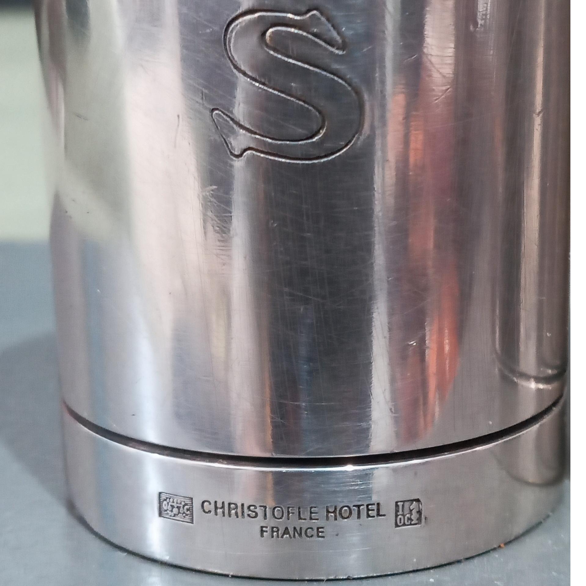 دو عدد شمش نقره عیار 925که در واقع پوسته نوی نقره نمکدون فلفلدون هتلی فرانسوی هستش که روشون حک شده CHRISTOFLE HOTE FRANC