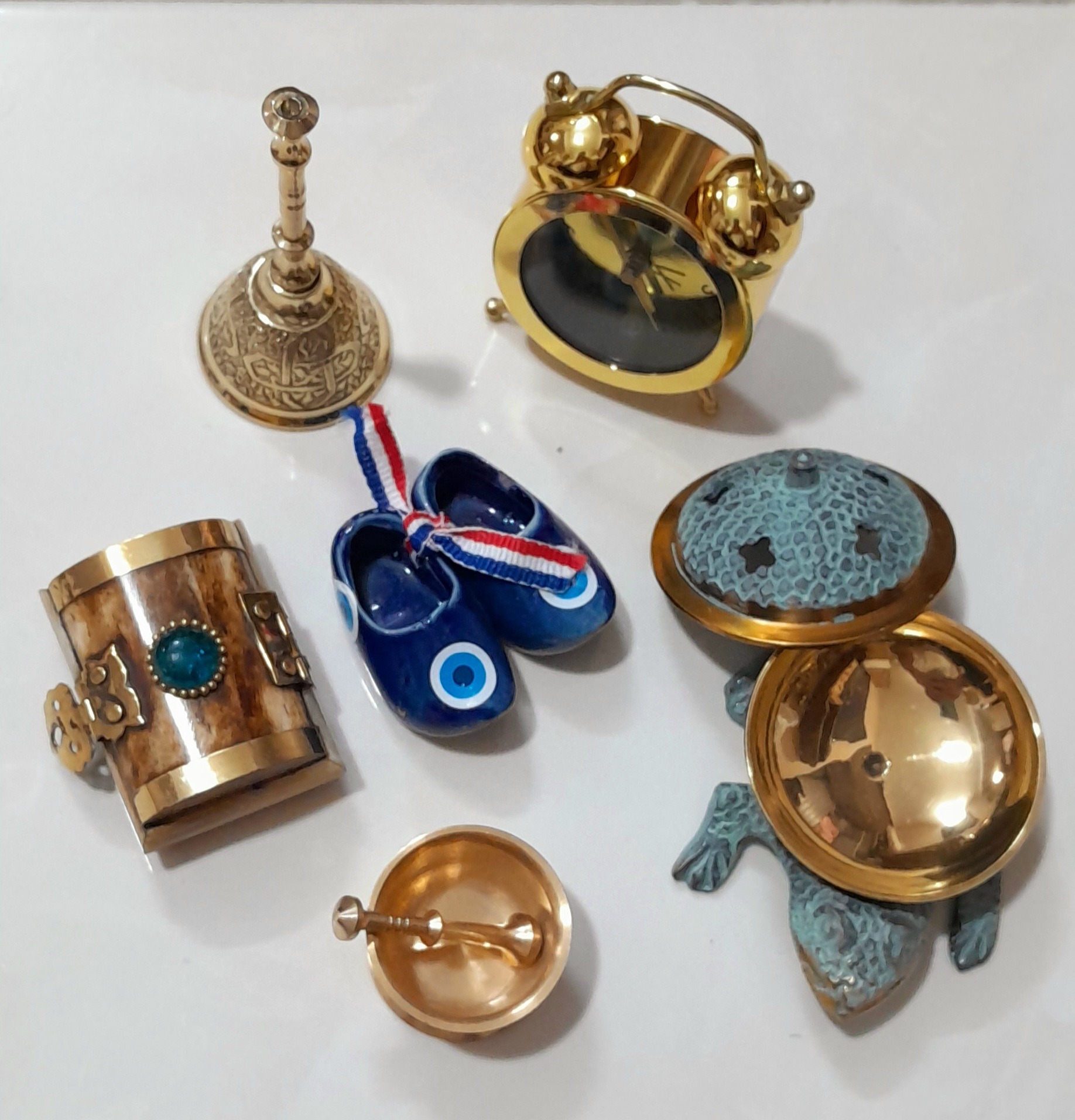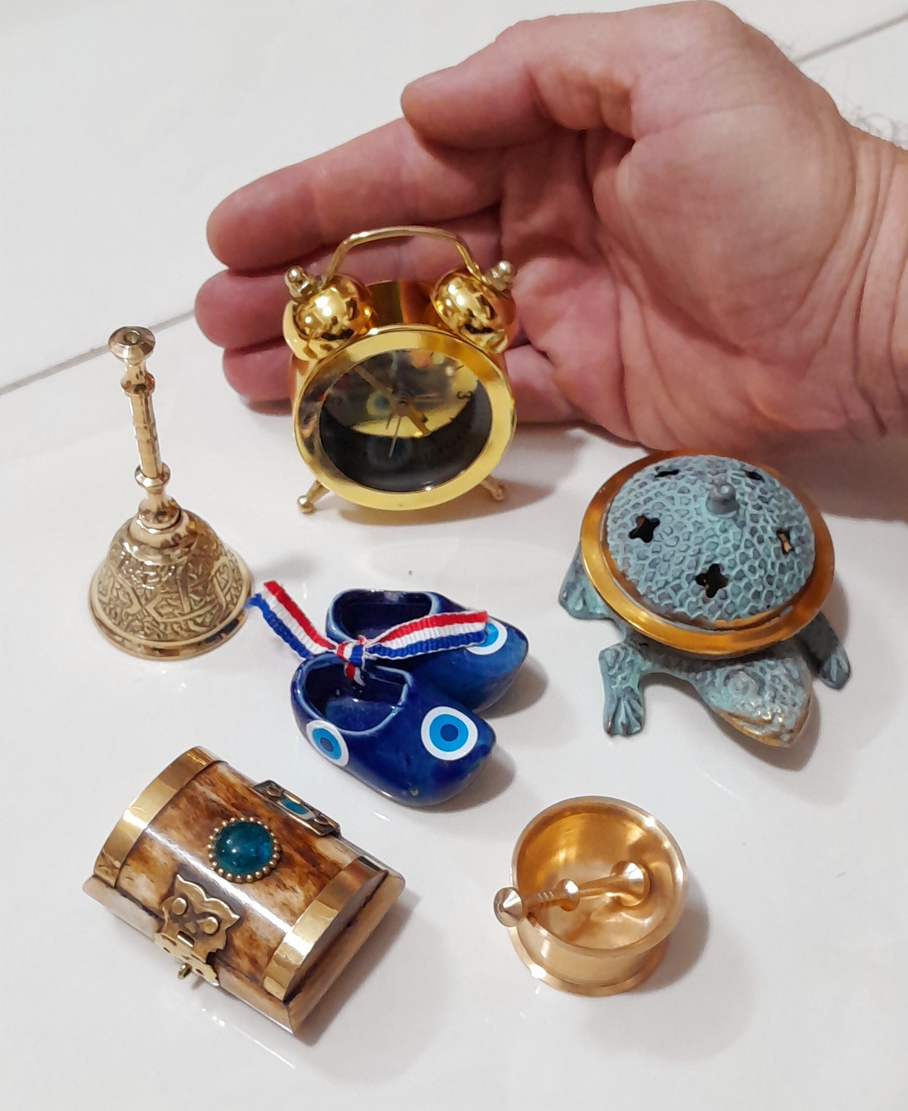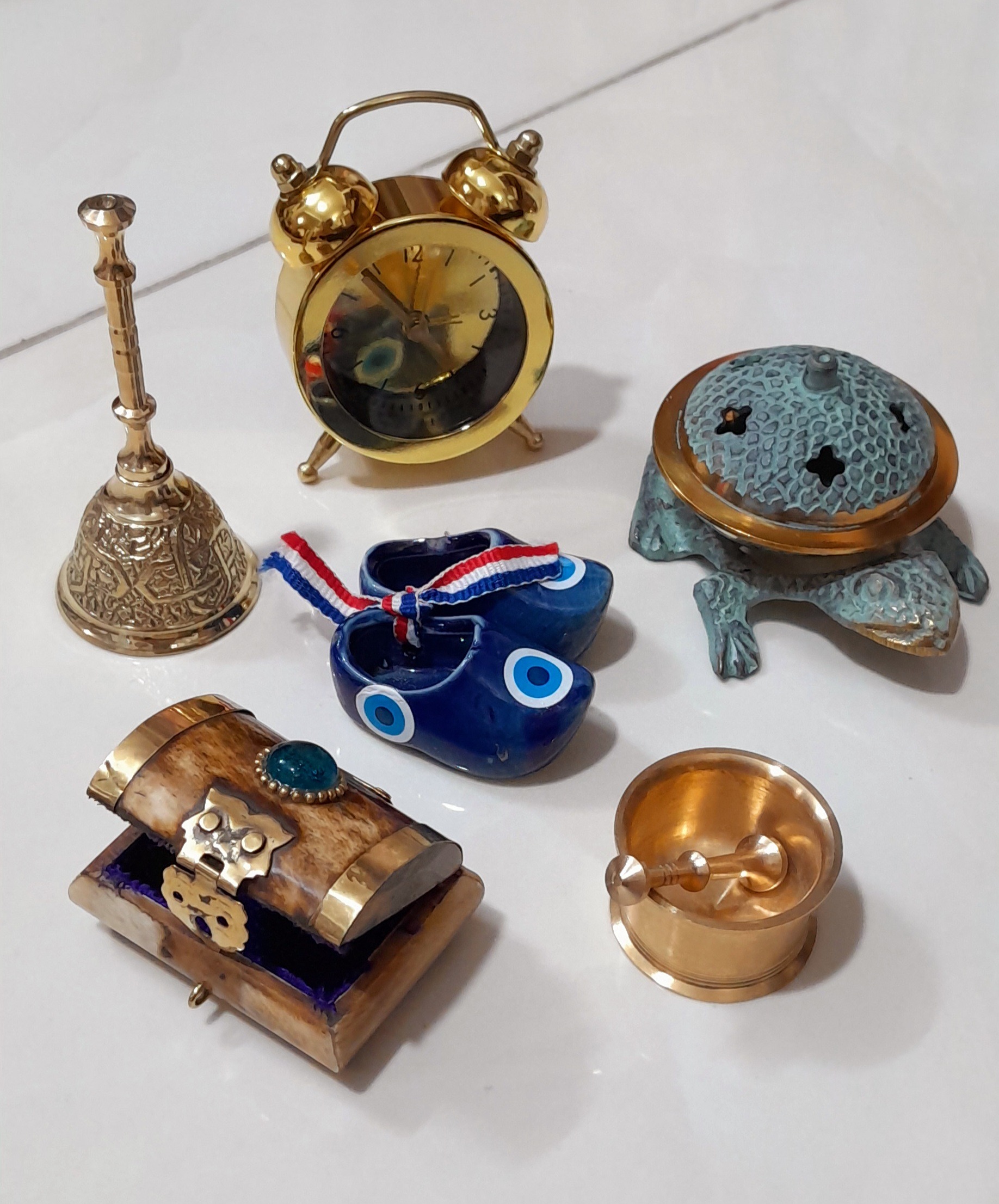 عودسوز ،ساعت، کفش چشم نظر، جعبه استخوانی، زنگوله، هاون