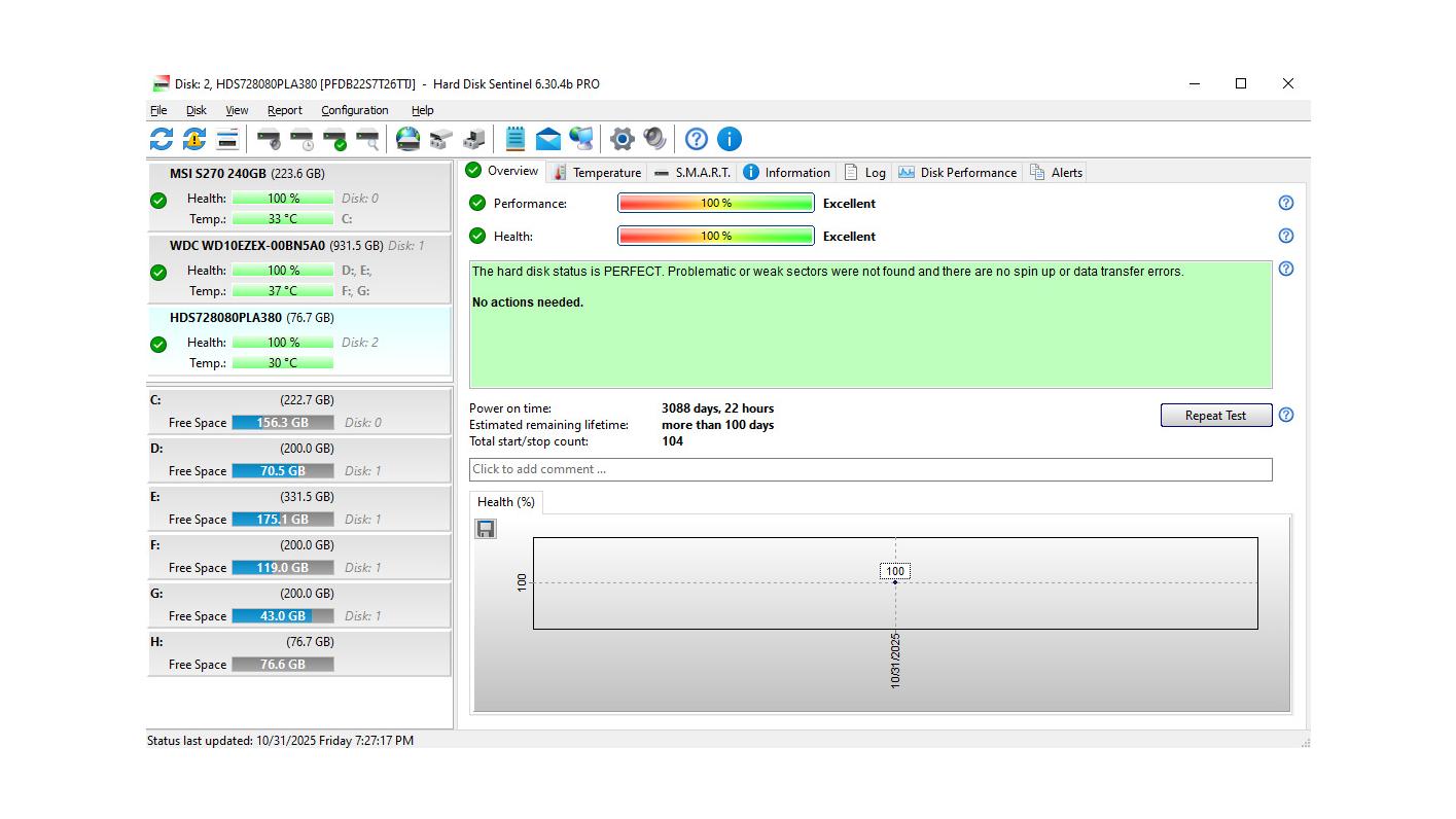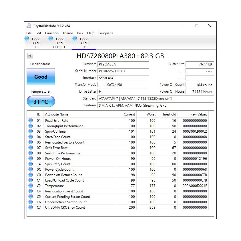 هارد 80 گیگ ساتا Hitachi DeskStar سلامت 100