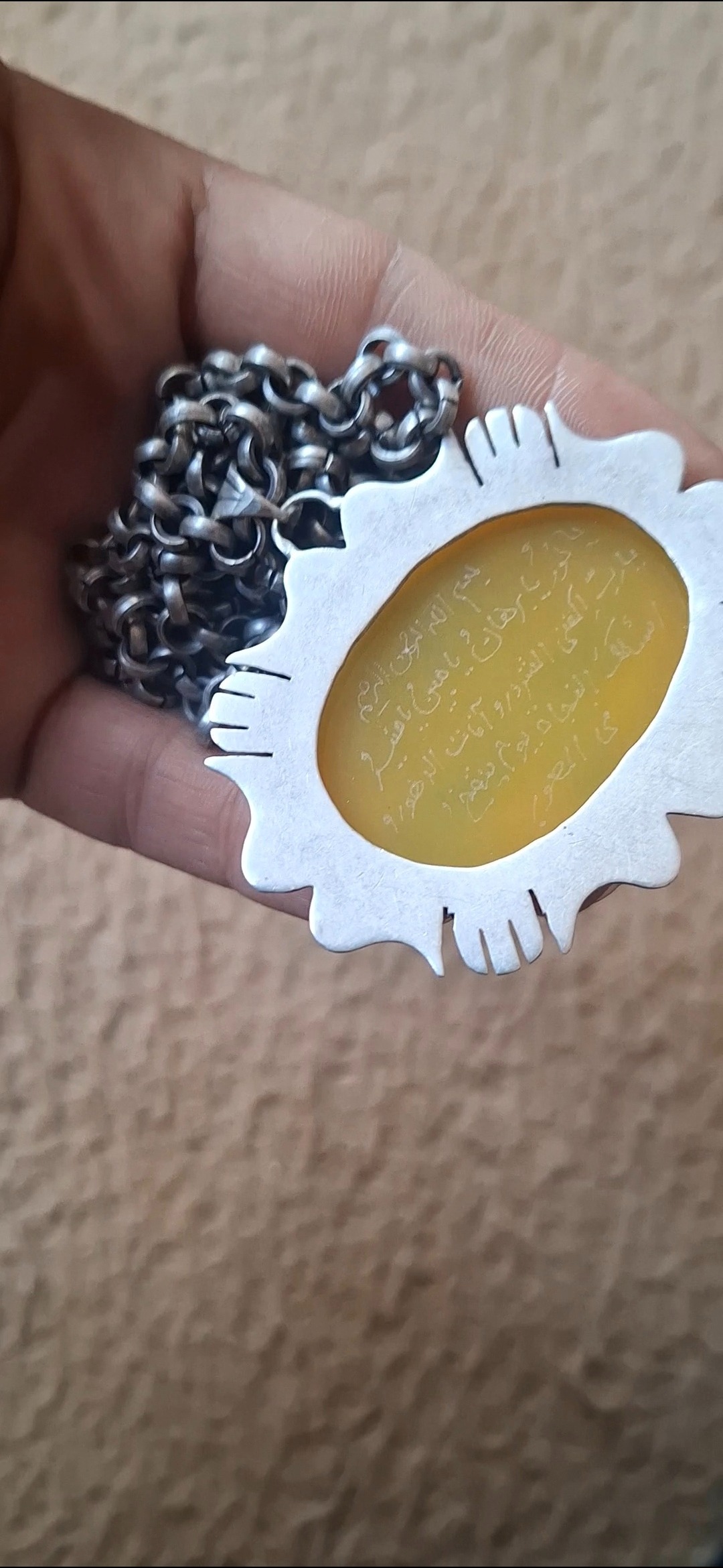 پلاک گردنبند نقره بانگین عقیق زرد با حکاکی بسیار زیبا فربهر