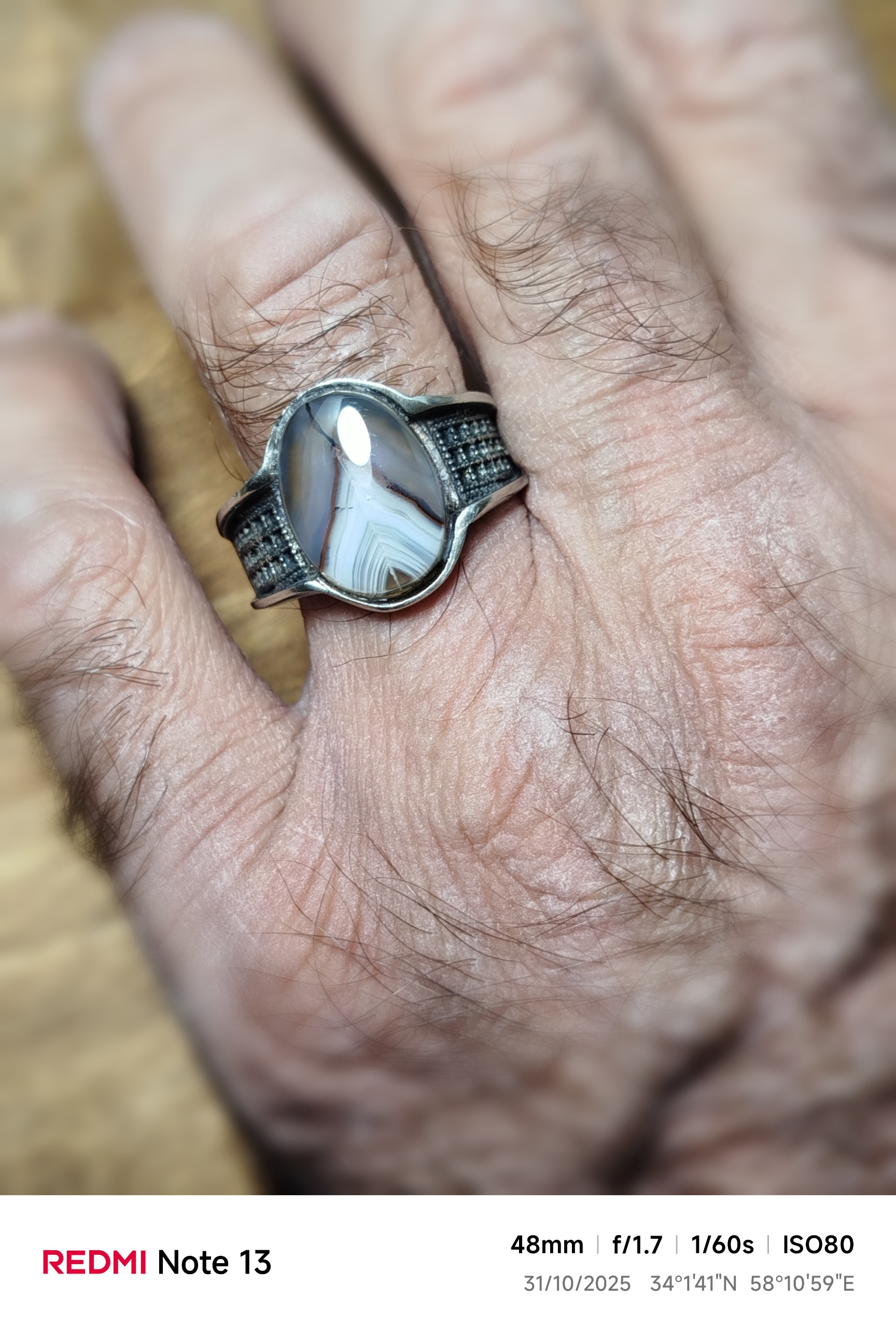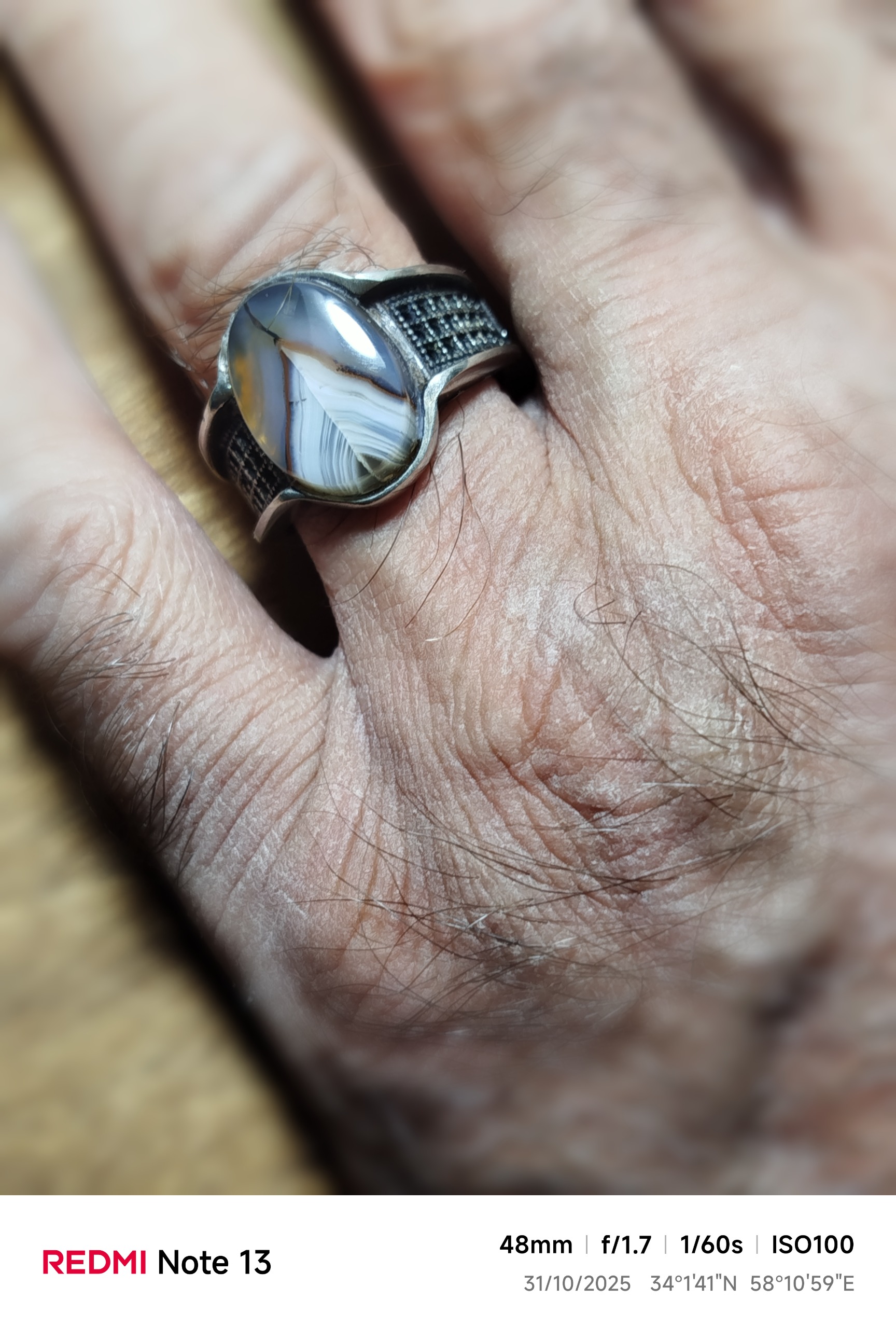 انگشتر مردانه با نگین عقیق سلیمانی رنگی