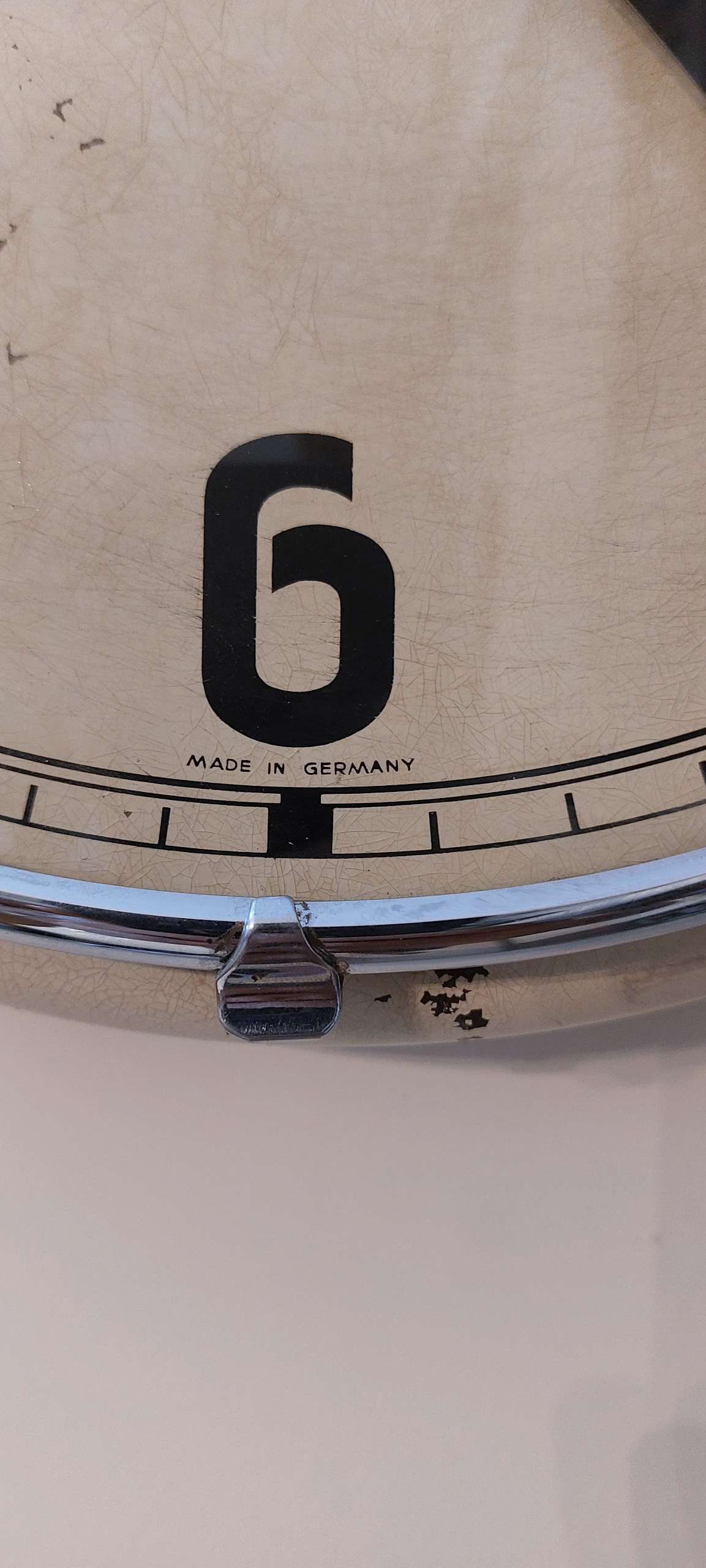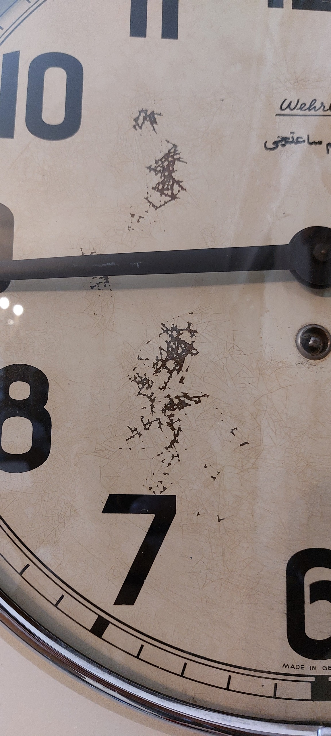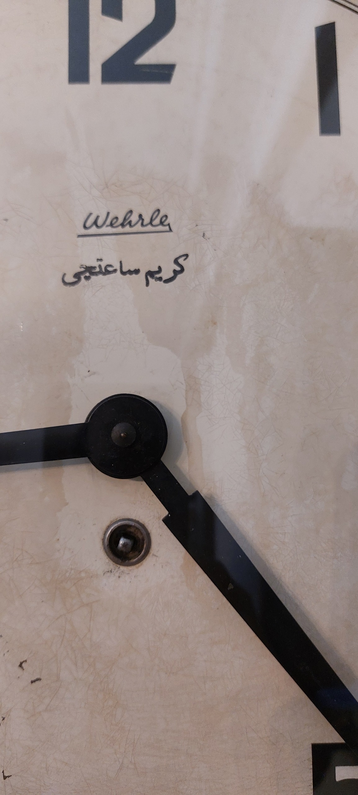 ساعت کلکسیونی با نام تبلیغاتی معروف مارک وهلر ساخت آلمان. تک کوک شیشه از جلو باز شو و تنظیم دستی عقربه ها. سالم و در حال کار. کلید کوک ندارد. قطر صفحه ساعت 28 سانتیمتر. ساعت قدمتش بالاست و رنگ صفحه ساعت ریختگی و خرابی دارد. داخل عکسها همه چیز مشخص هست.