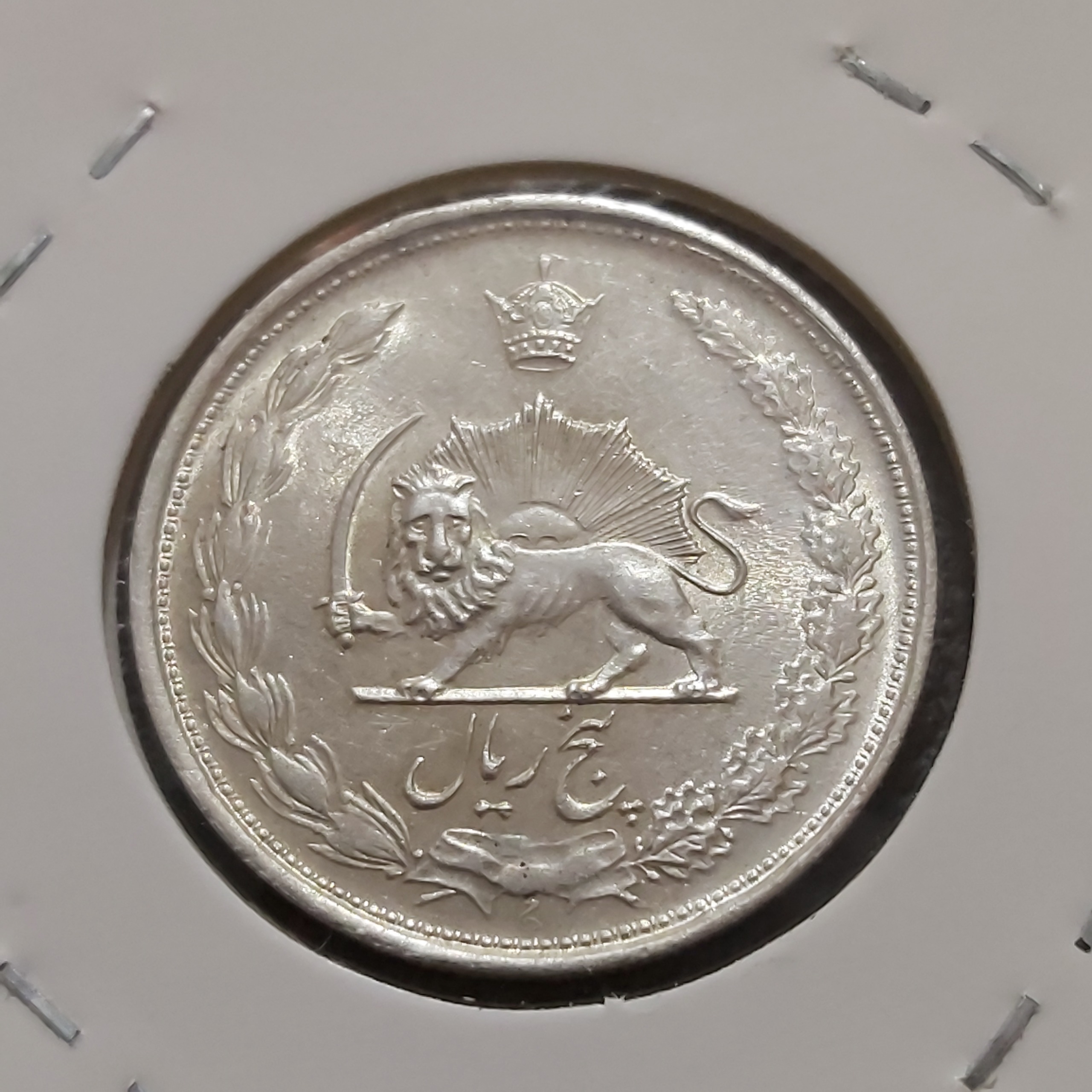 سکه 5 ریالی نقره شاهی 1328 تاریخ کمیاب