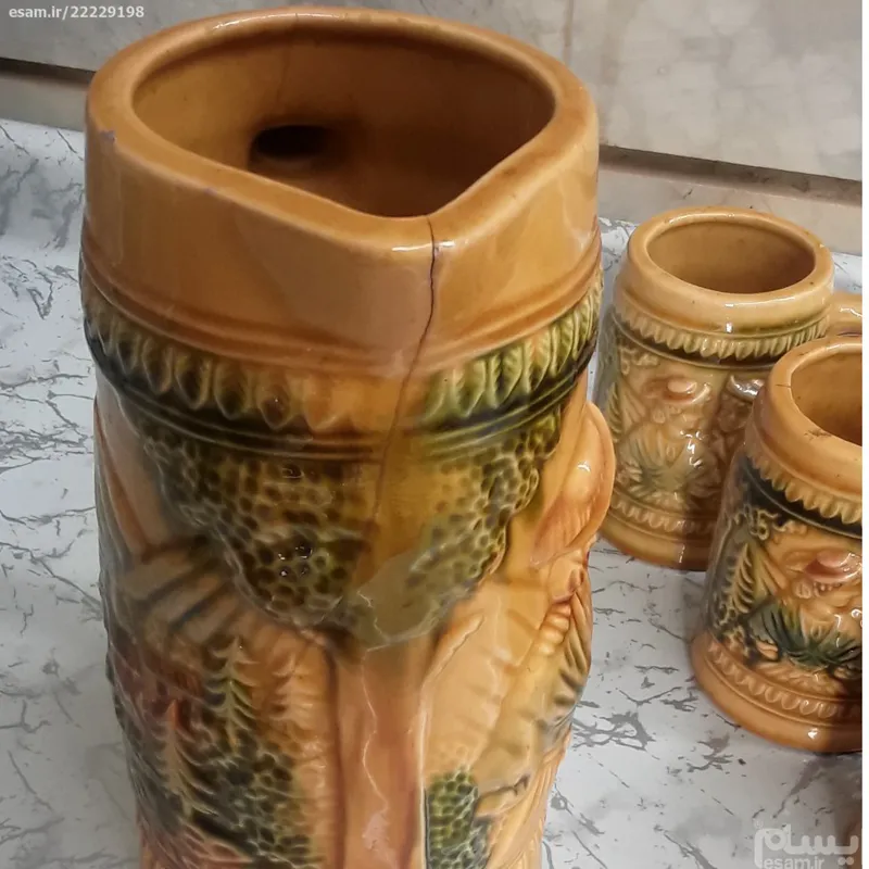 توجه: همانطور که در تصویر میبینید بدنه پارچ از بالا تا پایین ترک ریز خورده و قابل استفاده کاربردی نیست و بیشتر مناسب دکور و ویترین است.