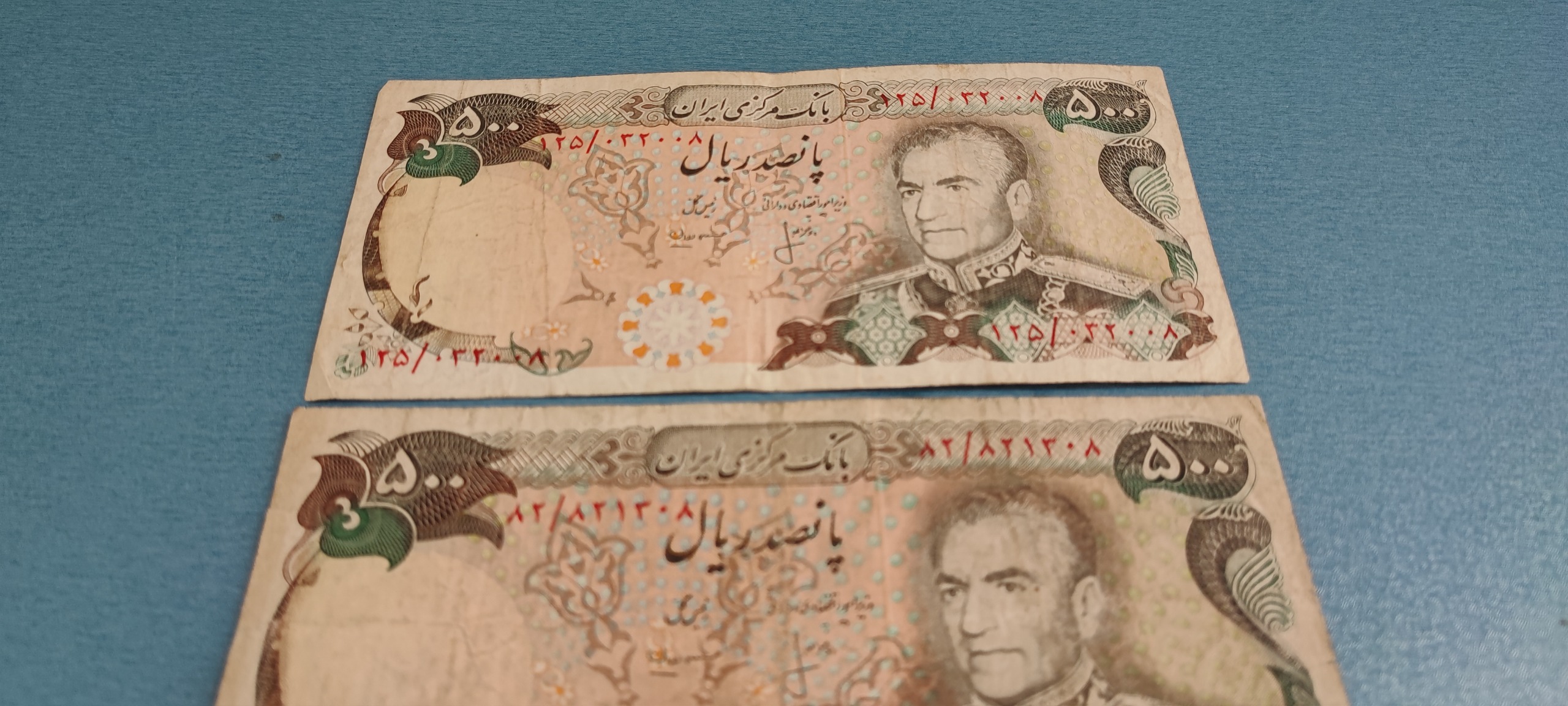 دو برگ اسکناس 500 ریال سری سیزدهم پهلوی