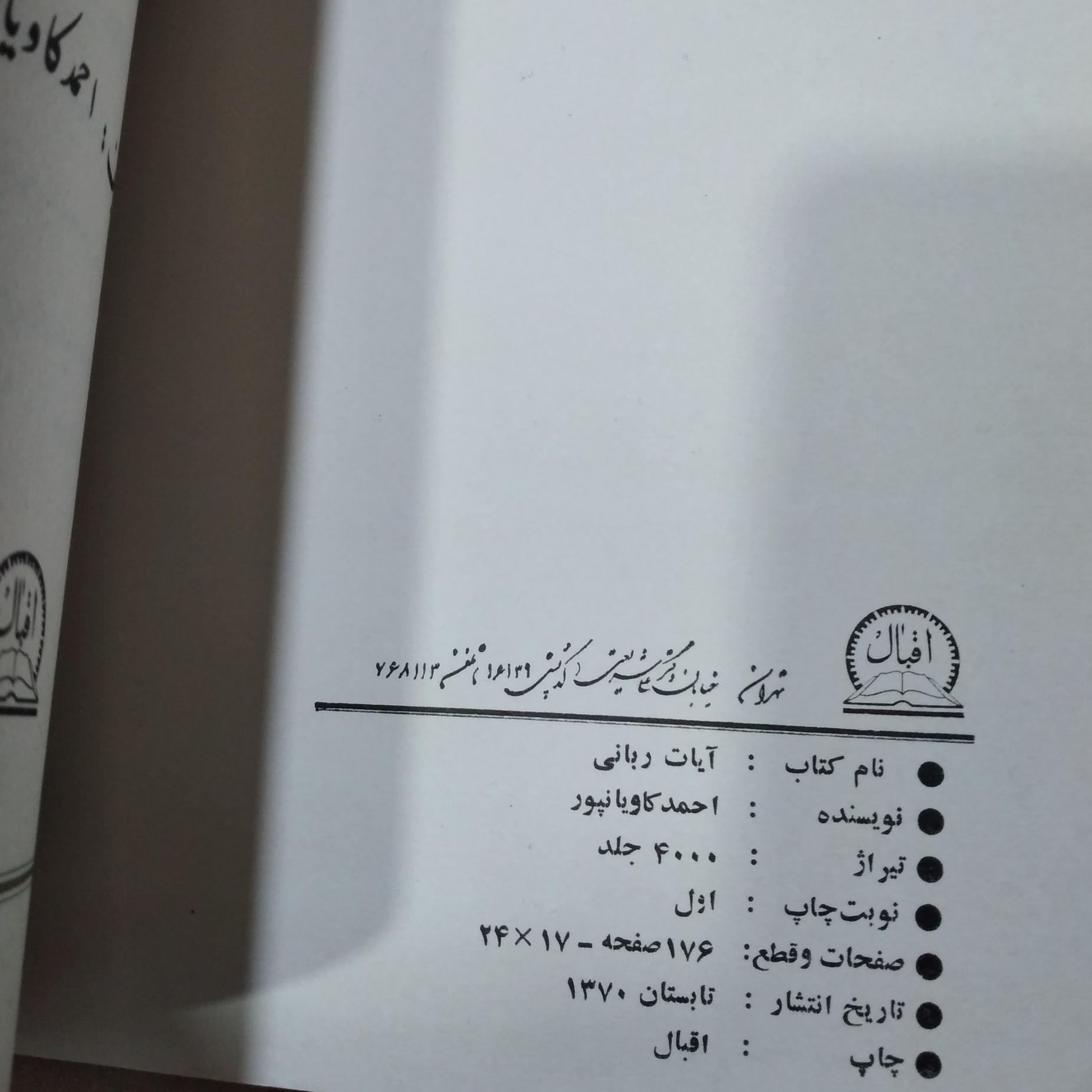 آیات ربانی _ احمد کاویان پور _ چاپ 1370_ اقبال