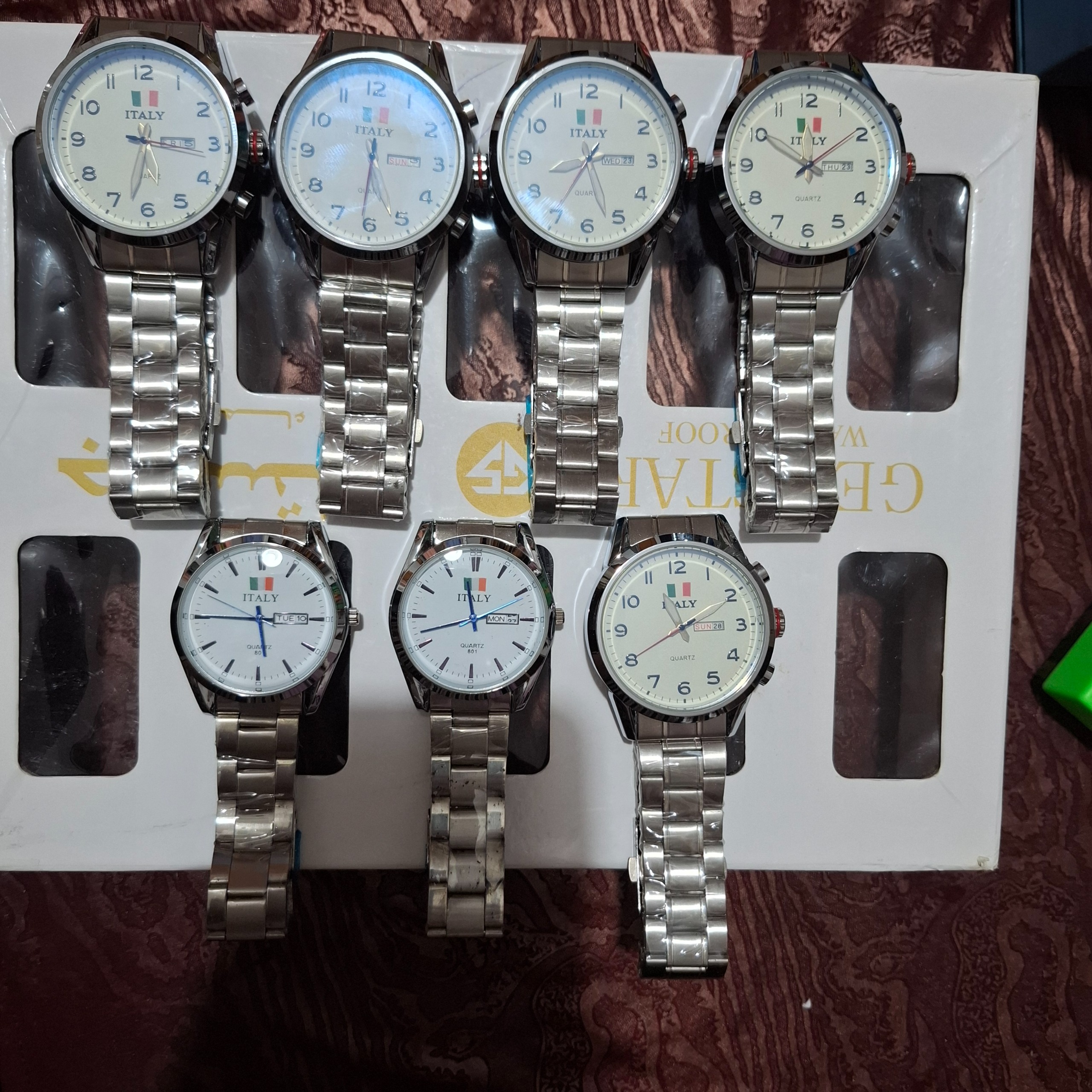7عددساعت ایتالی دوعددصفحه کوچک و5عددصفحه بزرگ مردانه ازلحاظ ظاهری کاملا سالم دوتاریخ کاملا استیل نوفقط کارنمیکنند اگرکسی به قاب ومتعلقات نیازدارددرمزایده شرکت کردبه مبلغ هم توجه نکنیدقبل ازرسیدن مبلغ تاییدمیشود