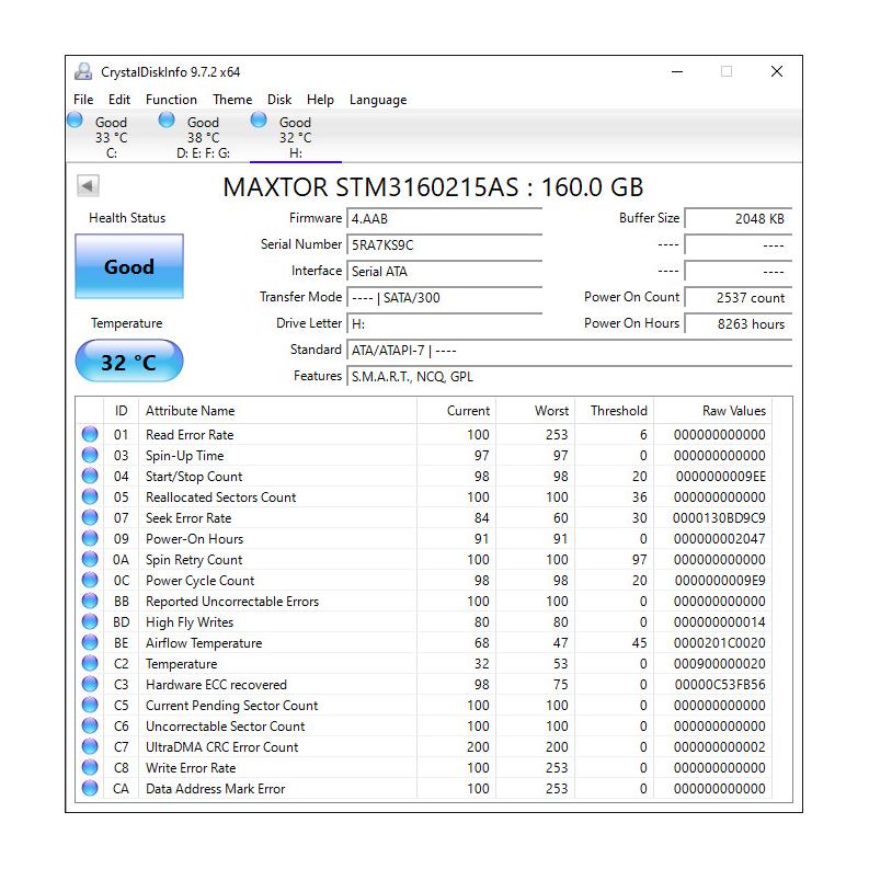 هارد 160 گیگ ساتا Maxtor DiamondMax (سلامت 100)