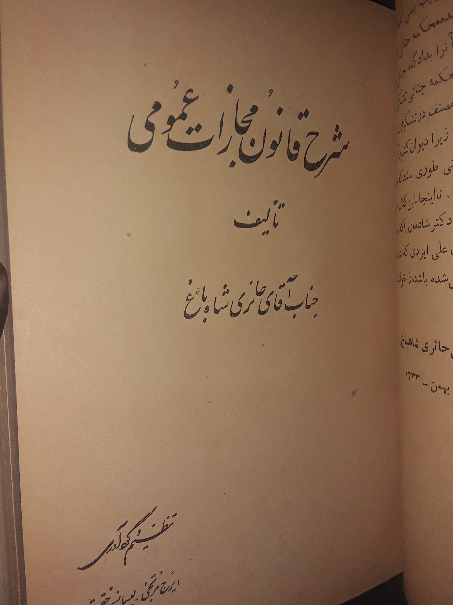 شرح قانون مجازات عمومی آقای حائری (شاه باغ) 1334