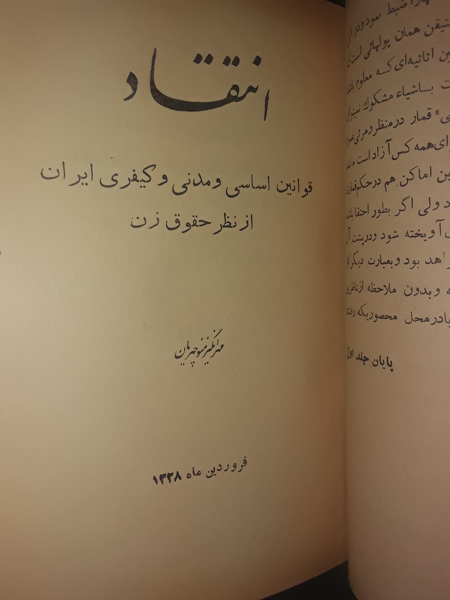 انتقاد قوانین اساسی و مدنی و کیفری ایران از نظر حقوق زن از مهرانگیز منوچهریان 1328