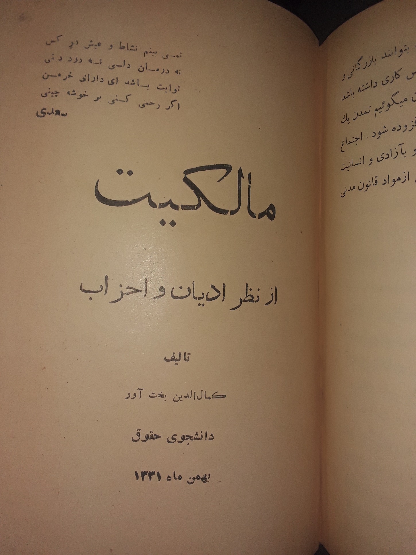 مالکیت از نظر ادیان و احزاب تالیف کمال الدین بخت آور 1331