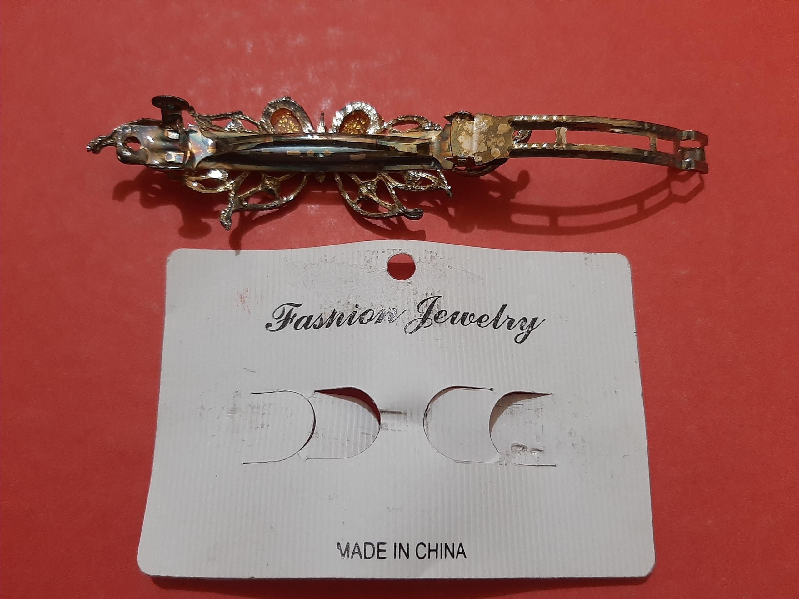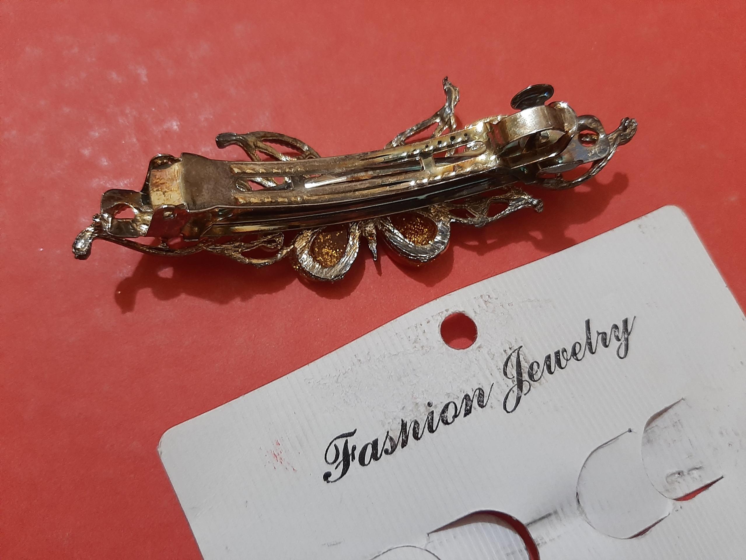 کلیپس مو . کاملا نو ، قسمت پشت کلیپس تغییر رنگ داده که در عکس مشخص است .