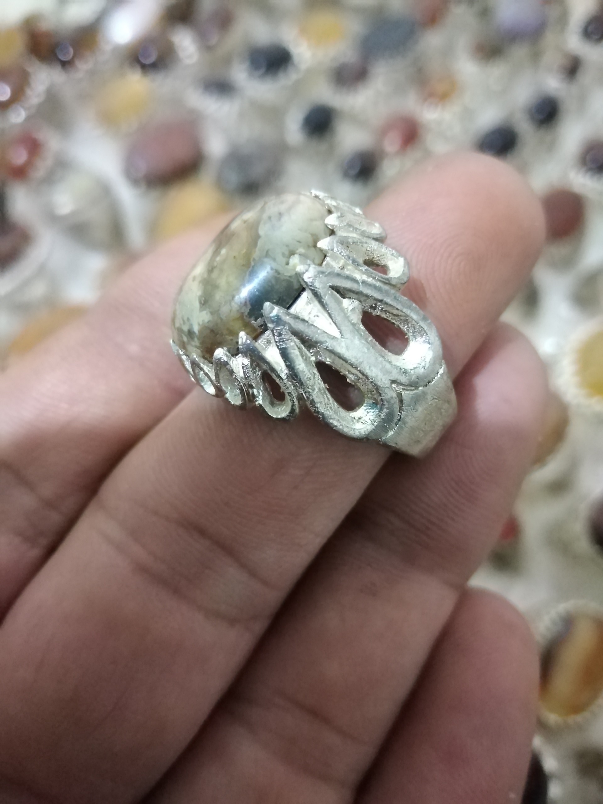 انگشتر قدیمی عقیق روکش نقره