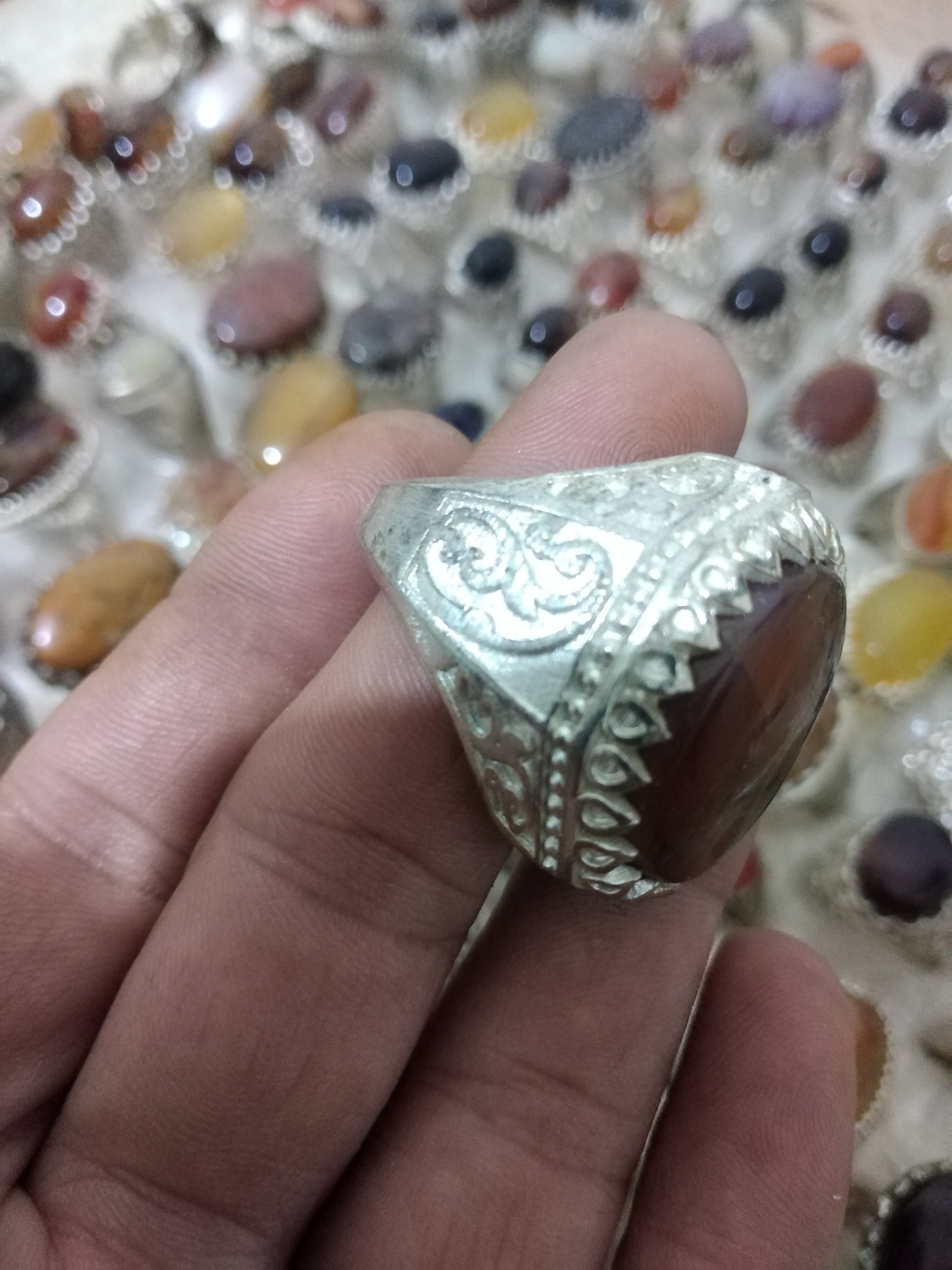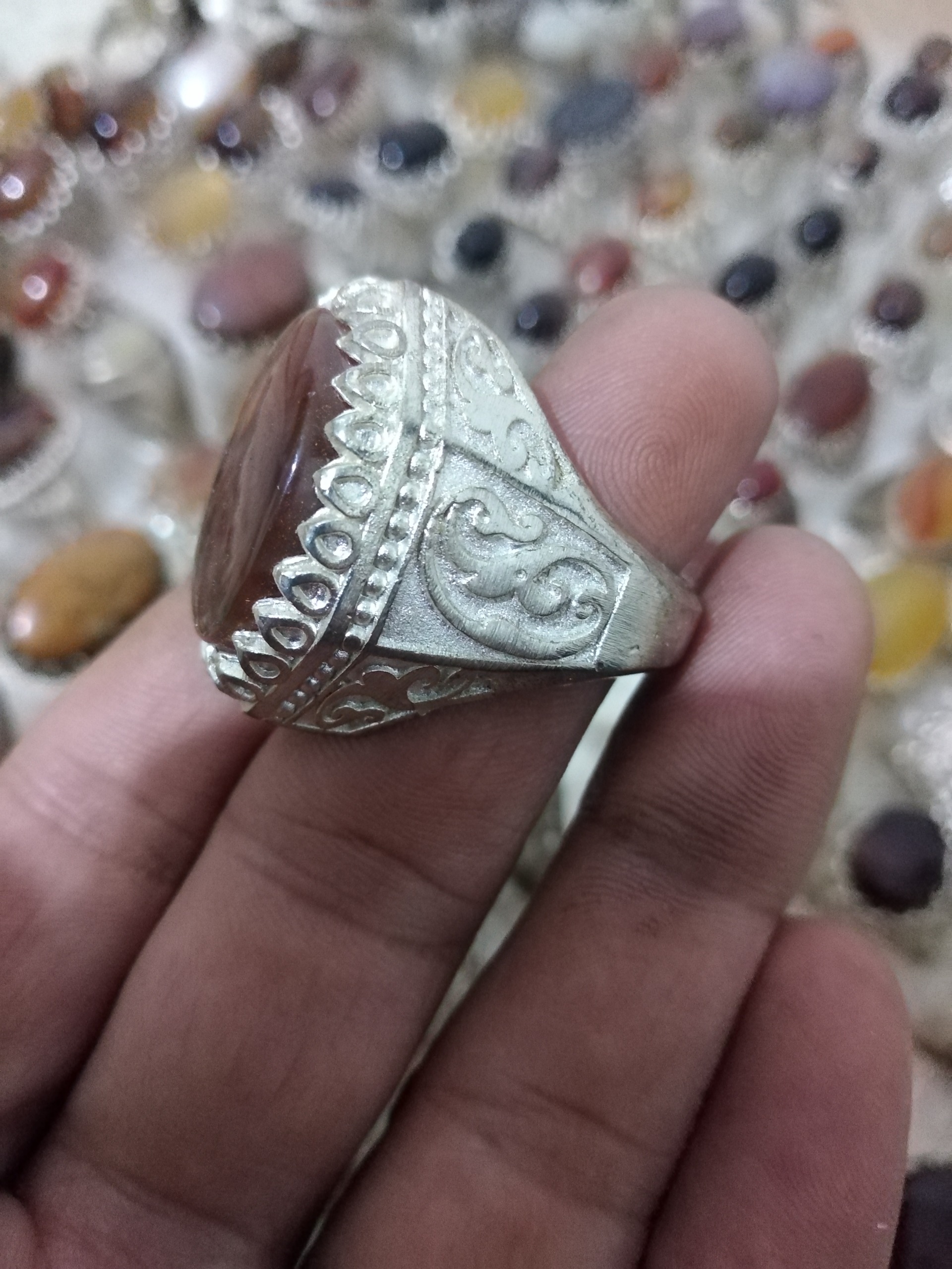 انگشتر قدیمی عقیق روکش نقره