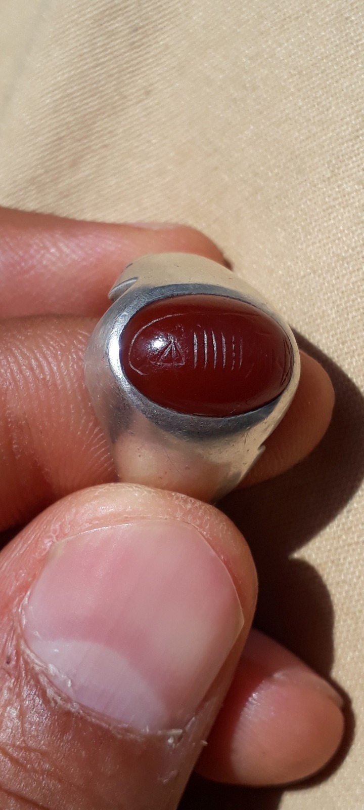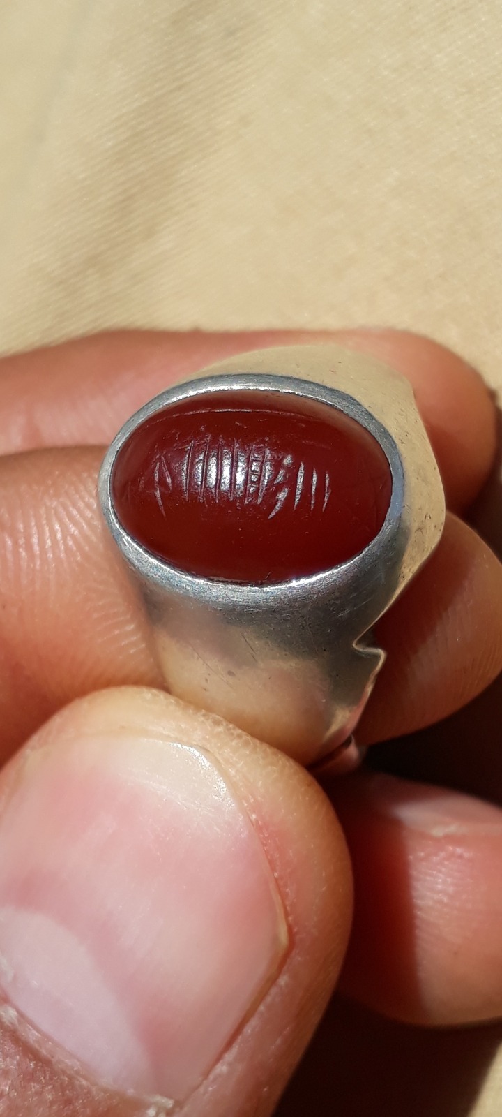 انگشتر کلوخه کهنه یمن تراش ثبتی سمبه کوب مزین به خط پربرکت مرحوم حاج حسین شهید یا حاج حسین حکاکان