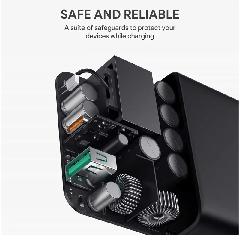 - ایمن و قابل اعتماد: محافظهای داخلی از دستگاههای شما در برابر جریان بیش از حد، گرمای بیش از حد و شارژ بیش از حد محافظت میکنند