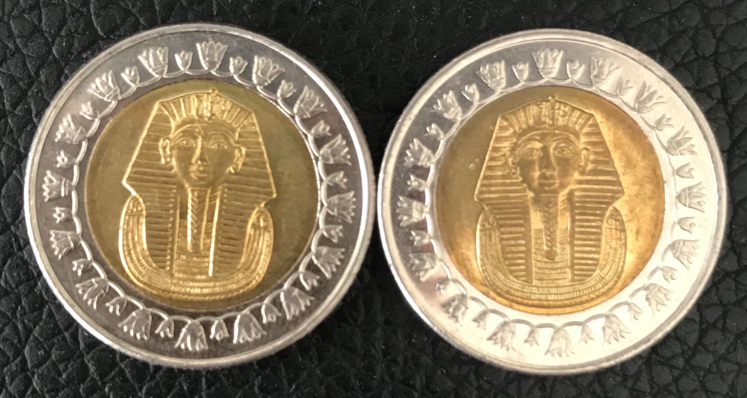 مطابق تصویر دو عدد سکه ی یک جنیه مصر 2008 بایمتال