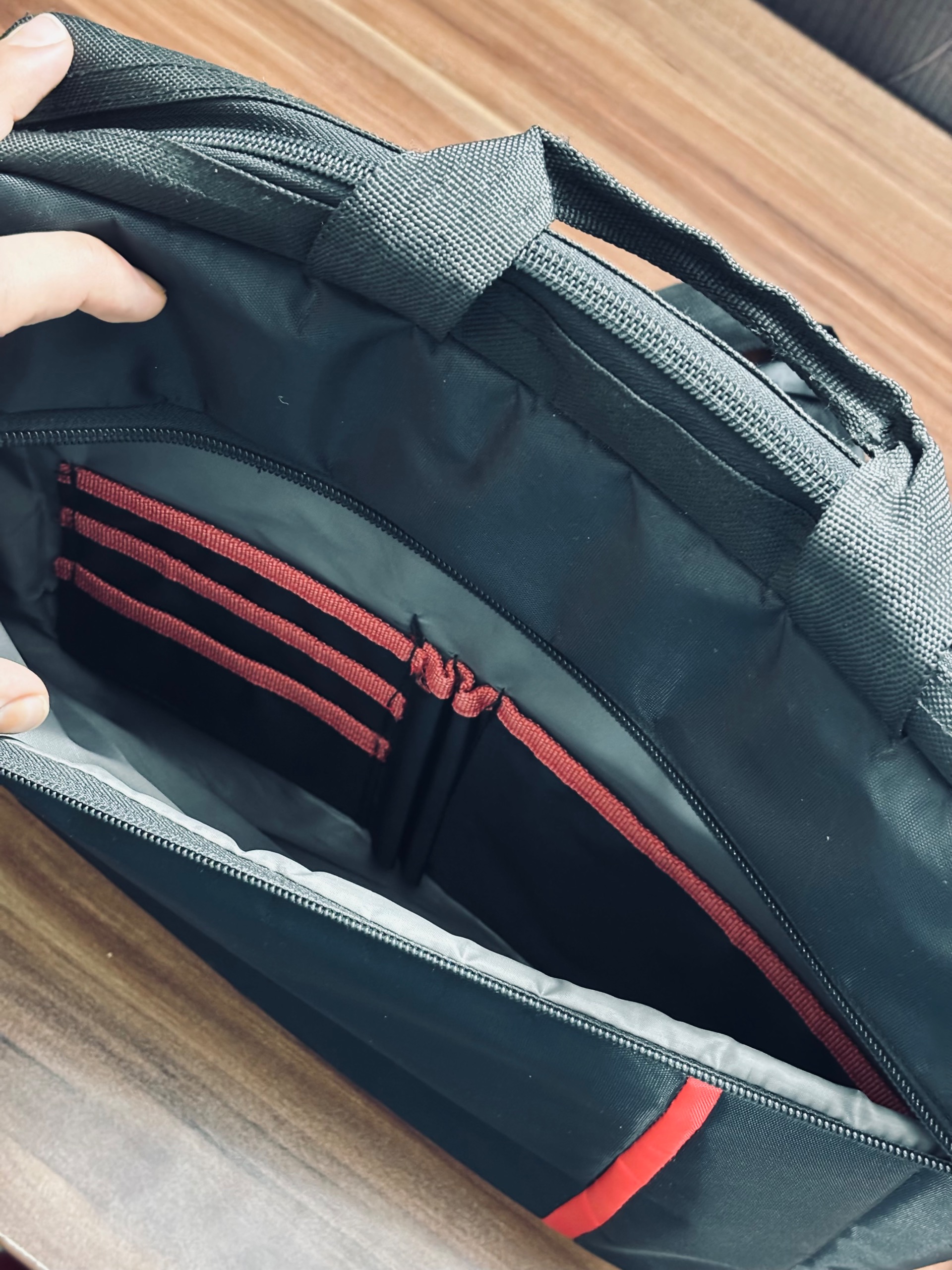 - جنس: پلی استر - دارای یک جیب بیرونی زیپی بزرگ - دارای سه جیب خودکار، جیب کارت و چند جیب کوچک - دارای جداره ضخیم برای محافظت بیشتر از لپ تاپ - قابلیت اتصال به دسته تلسکوپی چمدان های چرخ دار - دارای بند رو دوشی قابل تنظیم و جداشدن - دارای دو دسته برای حمل به صورت دستی - دارای لوگوی Lenovo حک شده روی کیف