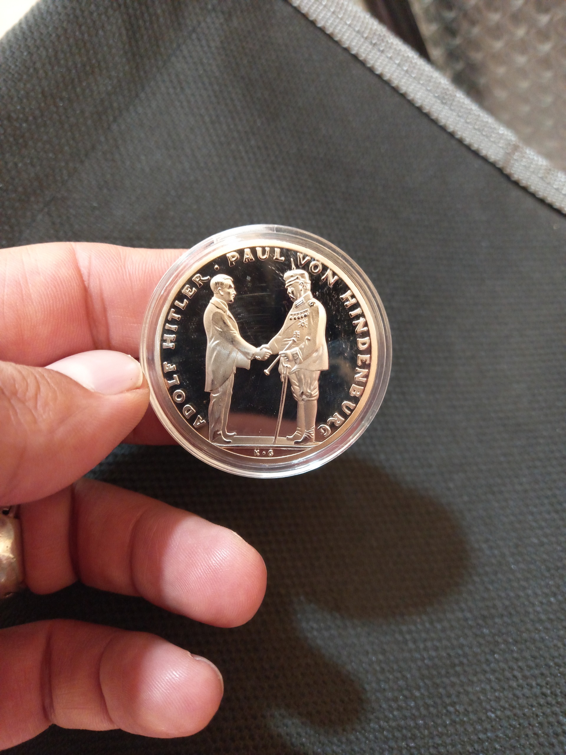 سکه کلکسیونی آلمان باطراحی بینظیر ودرجه1 جنس استیل ابکاری نقره ای کار خارجی به همراه قاب محافظ