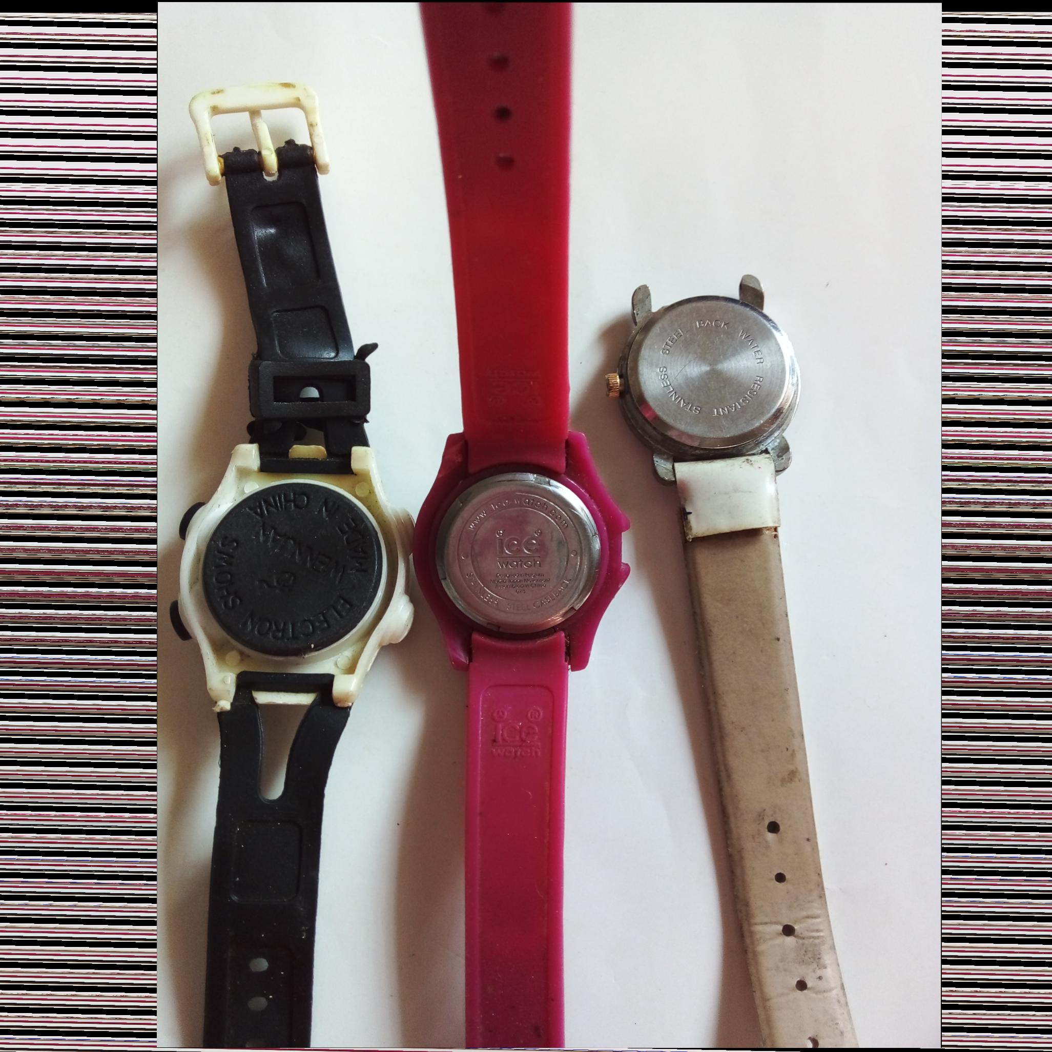 درود وروزبخیر عزیزان لوازم 3عدد ساعت مچی معیوب اعم از بند موتور شیشه قاب وپشت صفحه باهم وطبق تصاویر بفروش میرسد دقت شما مهربانان در خرید موجب عدم شرمندگی ماست شاد باشید باسپاس ازایسام وکاربران گرامی