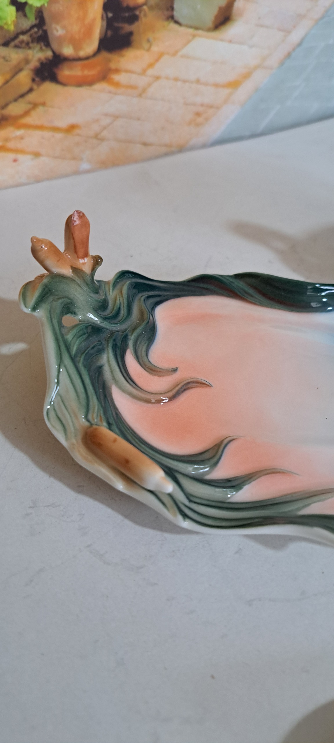 نعلبکی پشت کار گل قهوه ای یک رفتگی داشته رنگ زده شده