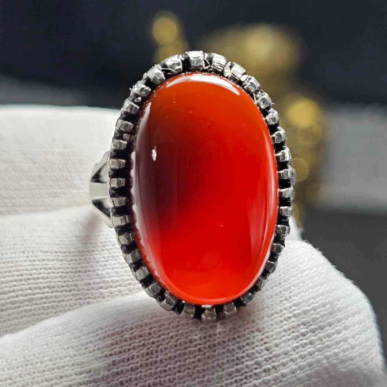 انگشتر نقره روس با سنگ عقیق معدنی خراسانی کد 36575