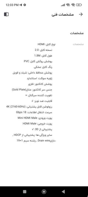 مشخصات کالا