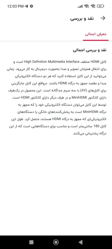 کابل HDMI برای انتقال همزمان تصویر و صدا بهصورت دیجیتال به کار میرود. زمانی میتوانید از این کابل استفاده کنید که هر دو دستگاه الکترونیکی مبدا و مقصد مجهز به درگاه HDMI باشند. درواقع این کابل جایگزینی برای کابلهای (AV) با سه سیم جداگانه است. این محصول در یکطرف دارای کانکتور MiniHDMI و در طرف دیگر دارای کانکتور HDMI است. توسط این کابل میتوان دستگاه الکترونیکی خود را که مجهز به درگاه MiniHDMI است به پخشکنندههای خانگی یا دستگاههای الکترونیکیای که مجهز به درگاه HDMI هستند، متصل کرد. طول این کابل 180 سانتیمتر است و مناسب برای دستگاههایی است که از این درگاه پشتیبانی میکنند.