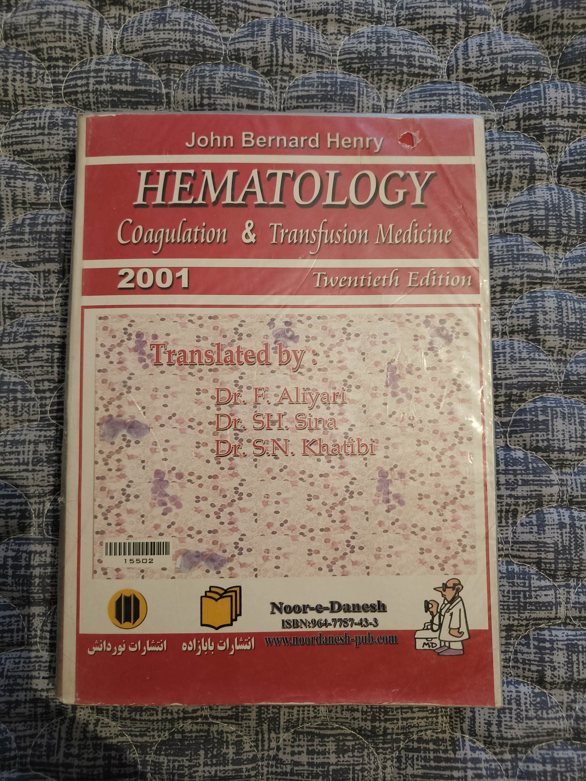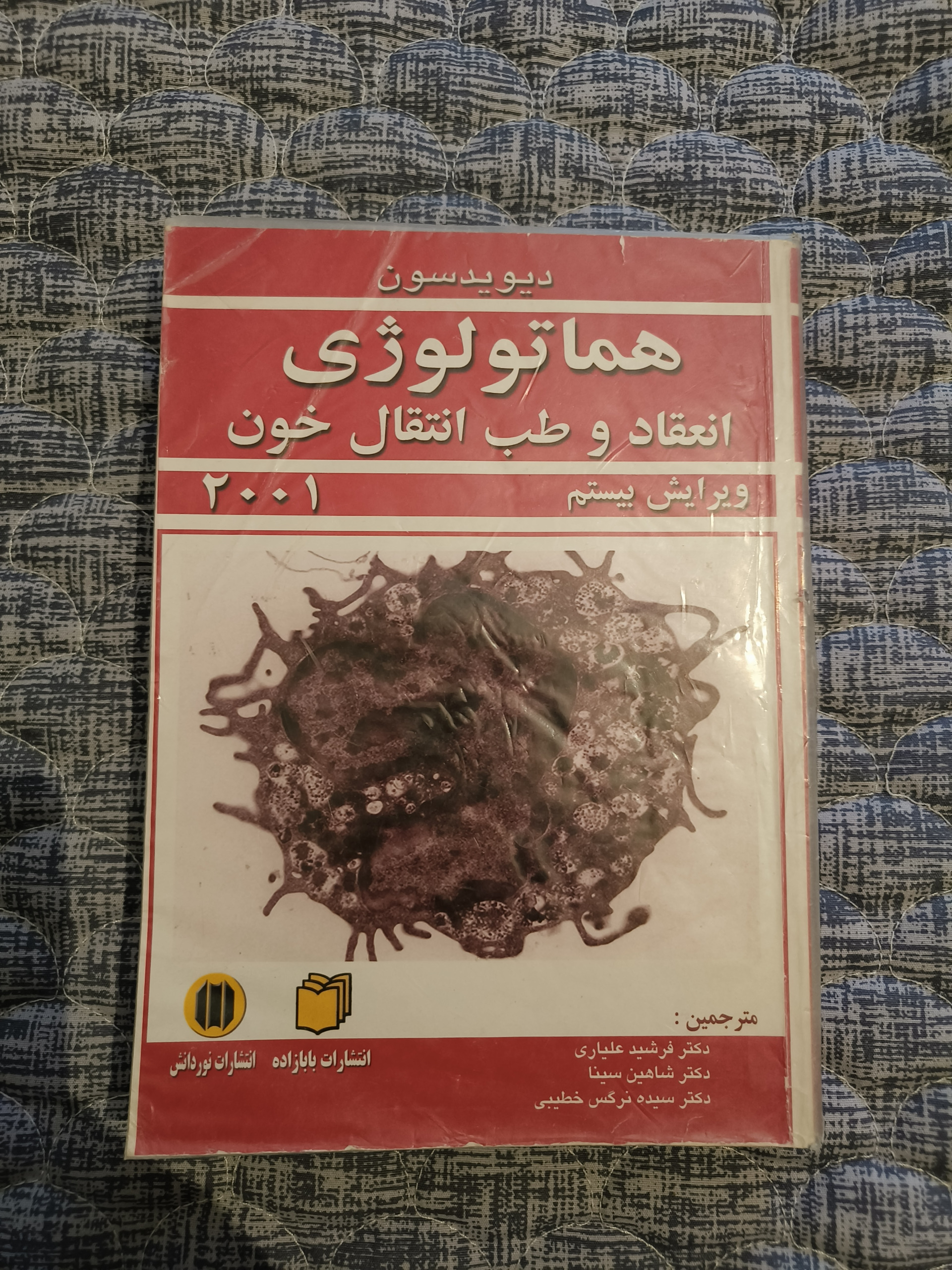 هماتولوژی دیویدسون ، چاپ 2001 ، کامل و تقریبا نو هست . تعداد صفحات کتاب ، 584 صحفه است . کتاب ، نسبتا سنگین است و با سرفصل های متعدد ، از روش کار سل کانتر ها ، سلولها امراض و .. را دربردارد . مناسب مطالعه اختصاصی هست و برای مبتدیان ، مناسب نیست . افراد علاقه مند به مطالعه و ادامه تحصیل ، در رشته خون شناسی ، می توانند از این کتاب بهره گیرند .