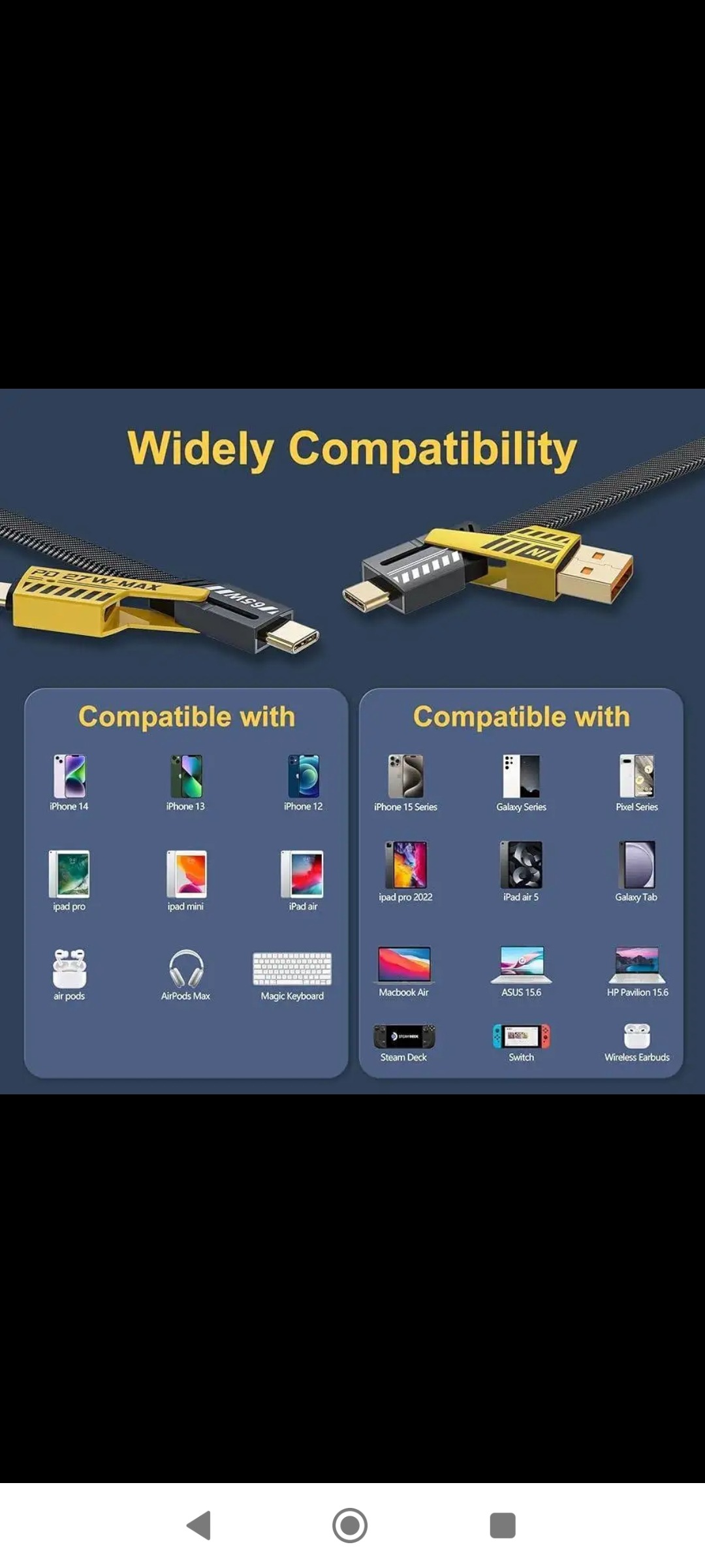 با قابلیت شارژ و امکان انتقال اطلاعات و سازگار با تمامی محصولاتی که ورودی لایتنینگ و Type C دارند.