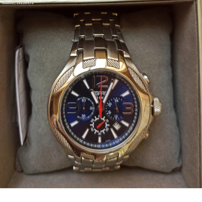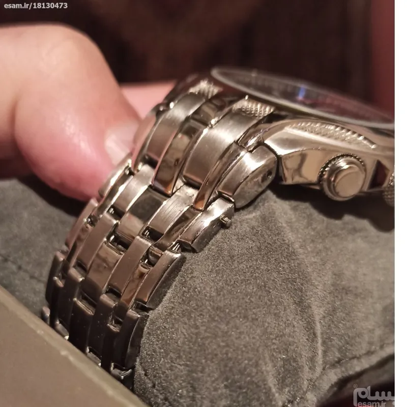 فقط بند ساعت بدلیل اینکه خواستم عوض کنم چرم بندازم نشد،یه خورده خش روی بند افتاده.شما میتونید بند چرمی براش تهیه کنید.