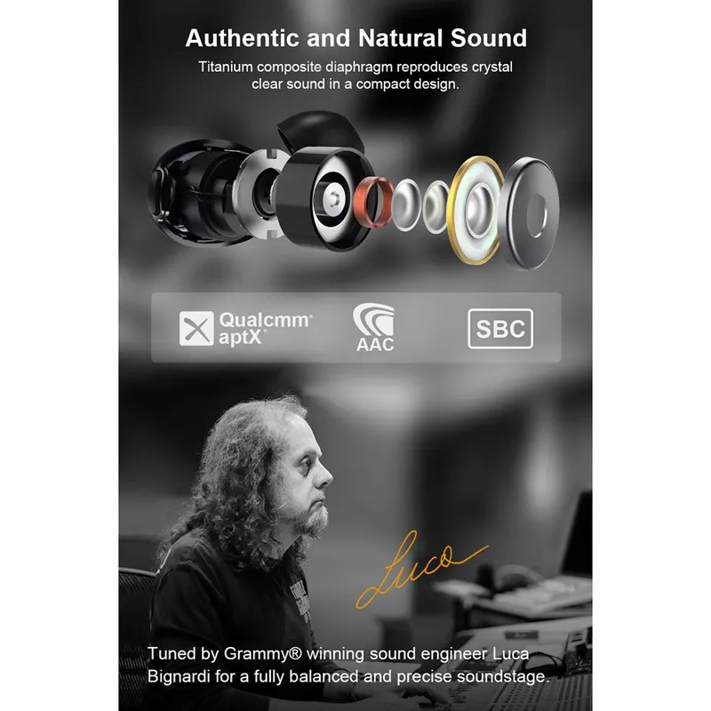 درایور دینامیک کامپوزیت تیتانیوم : درایور دینامیک 7 میلی متری با دیافراگم کامپوزیت تیتانیوم که برای هدفون های فشرده طراحی شده است ، باس قدرتمند و جزئیات عالی را متعادل می کند . برای افزایش کارایی، صدای شفاف و شفاف را در طراحی فوق فشرده تولید می کند .