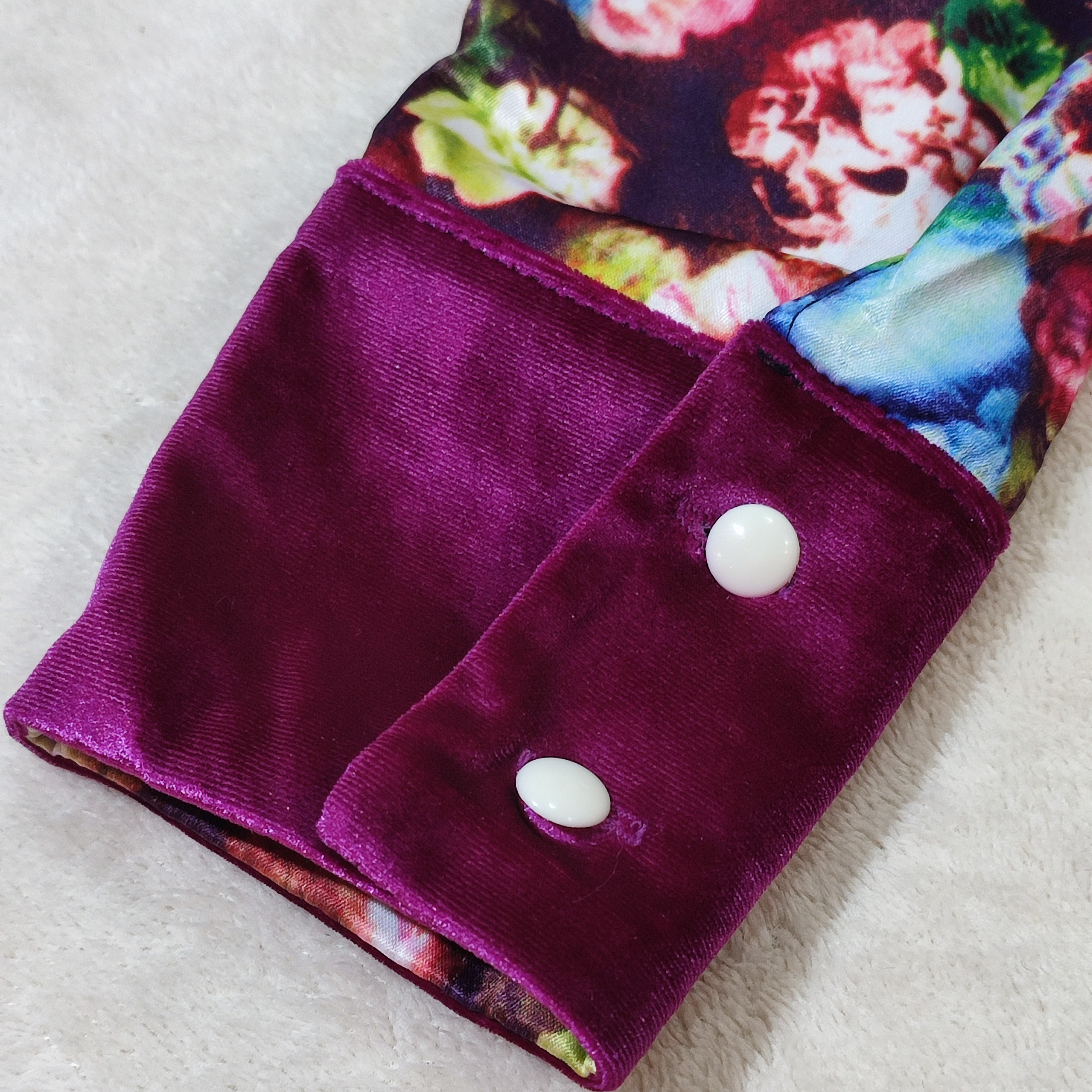 جنس ساتن کش ، یقه و سر آستین مخمل