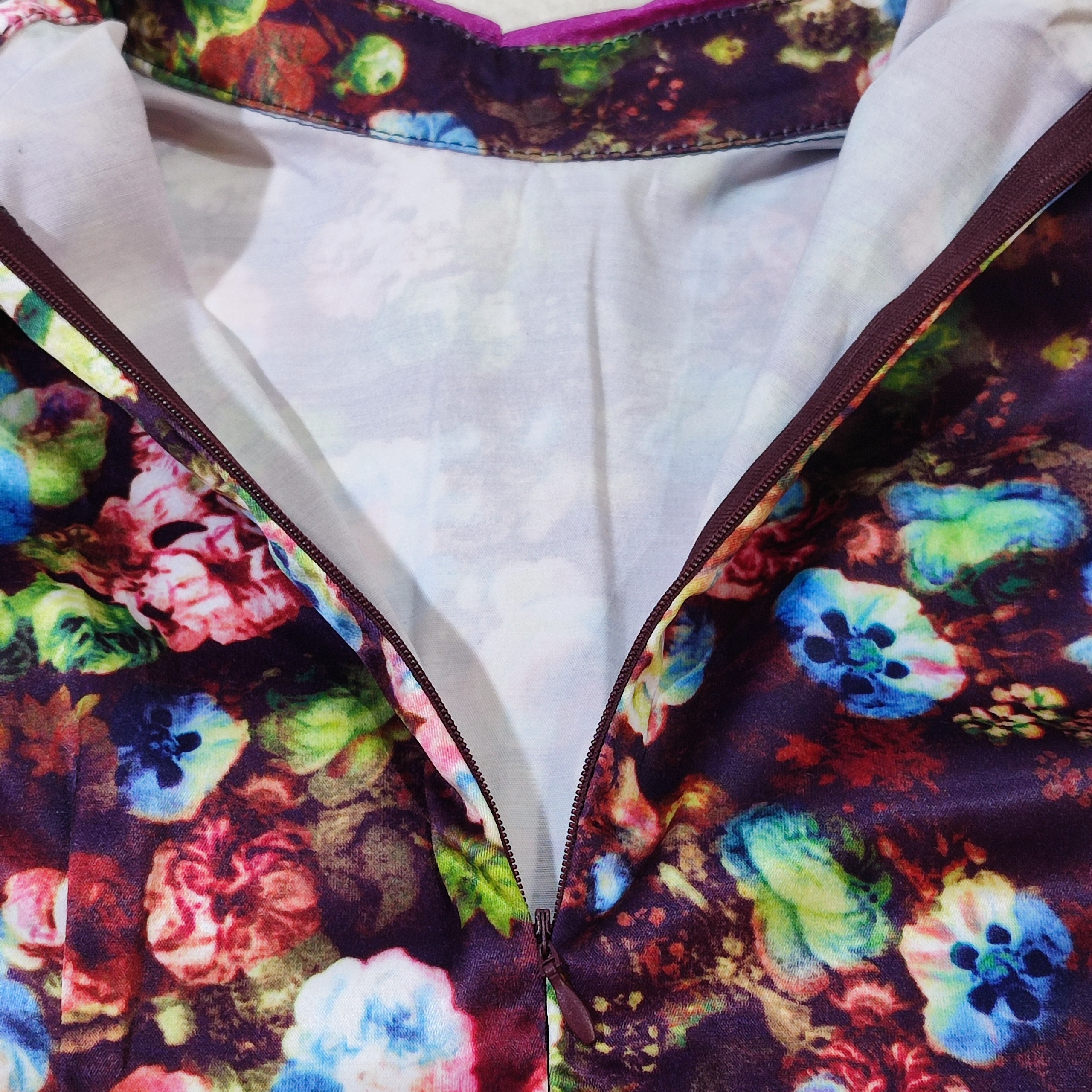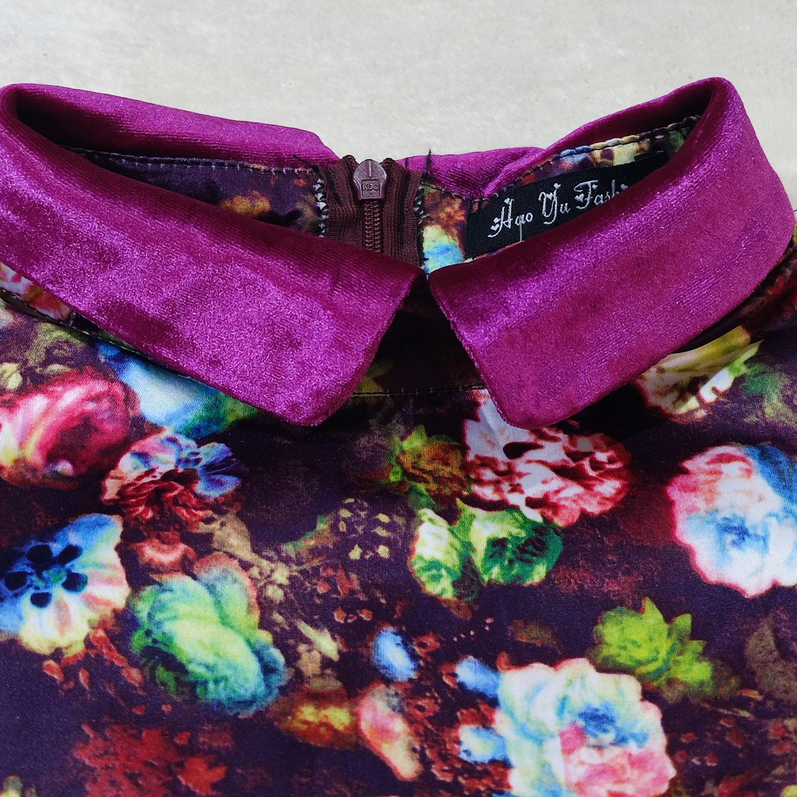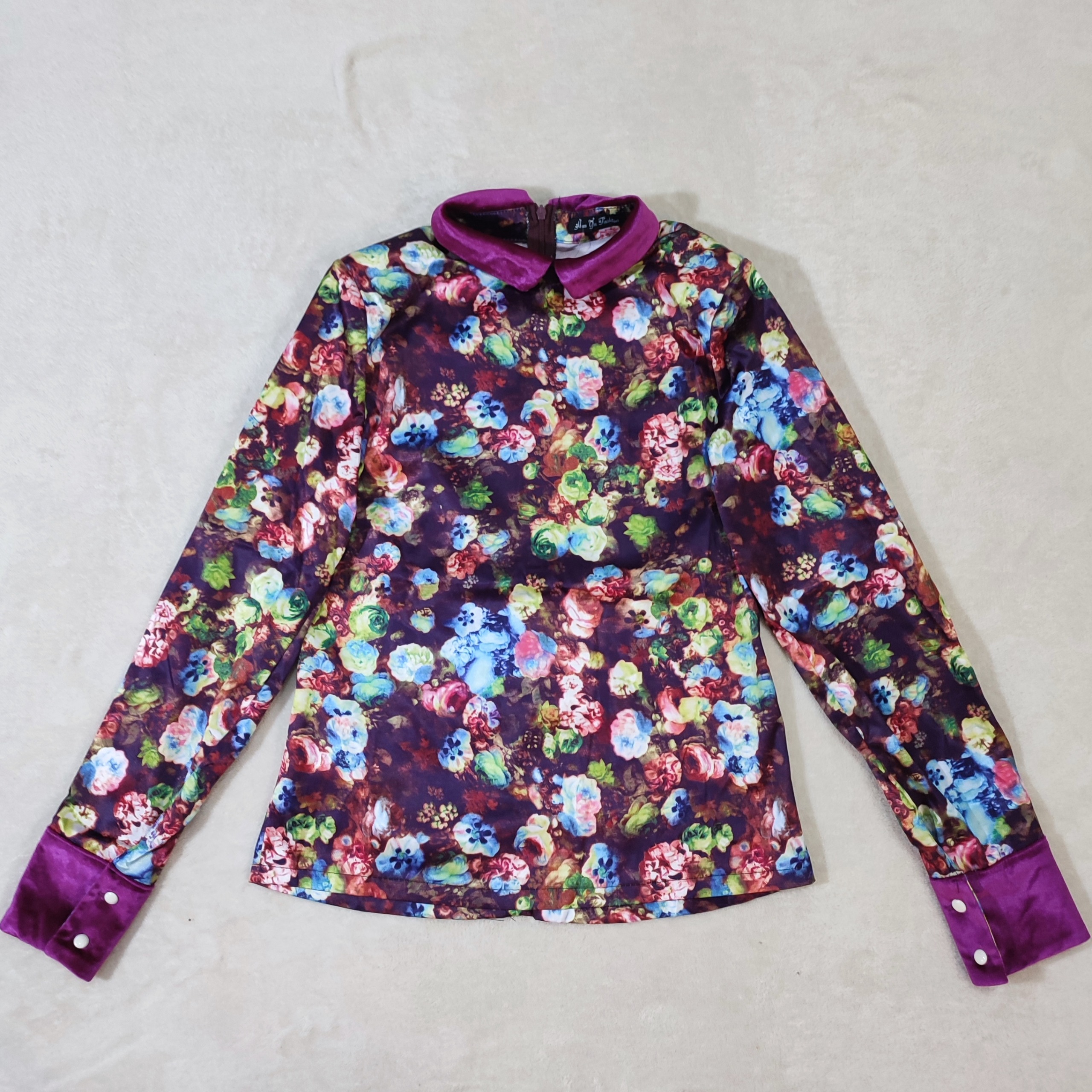 شومیز ساتن آبرنگی بنفش گلدار وارداتی سایز 36