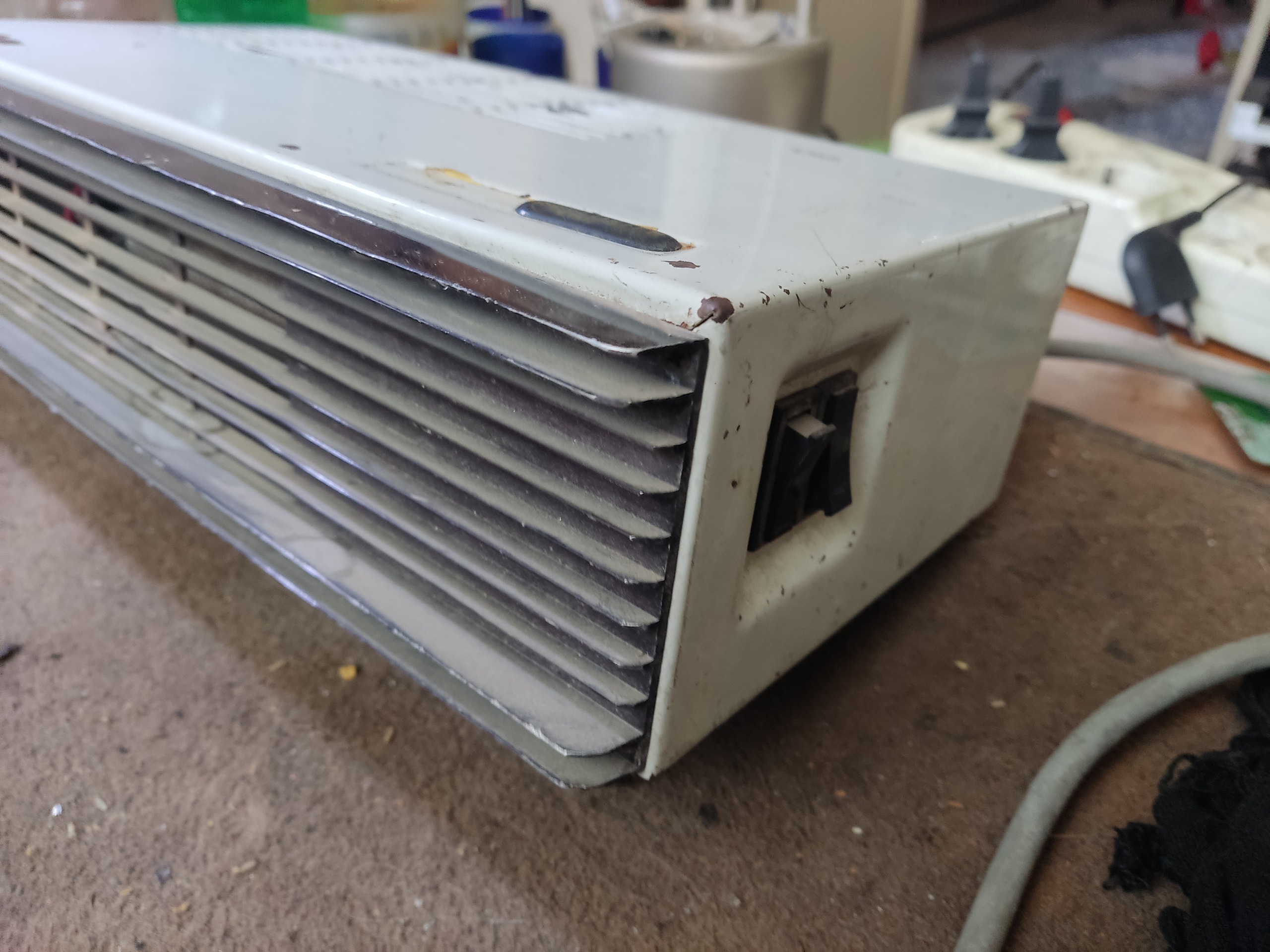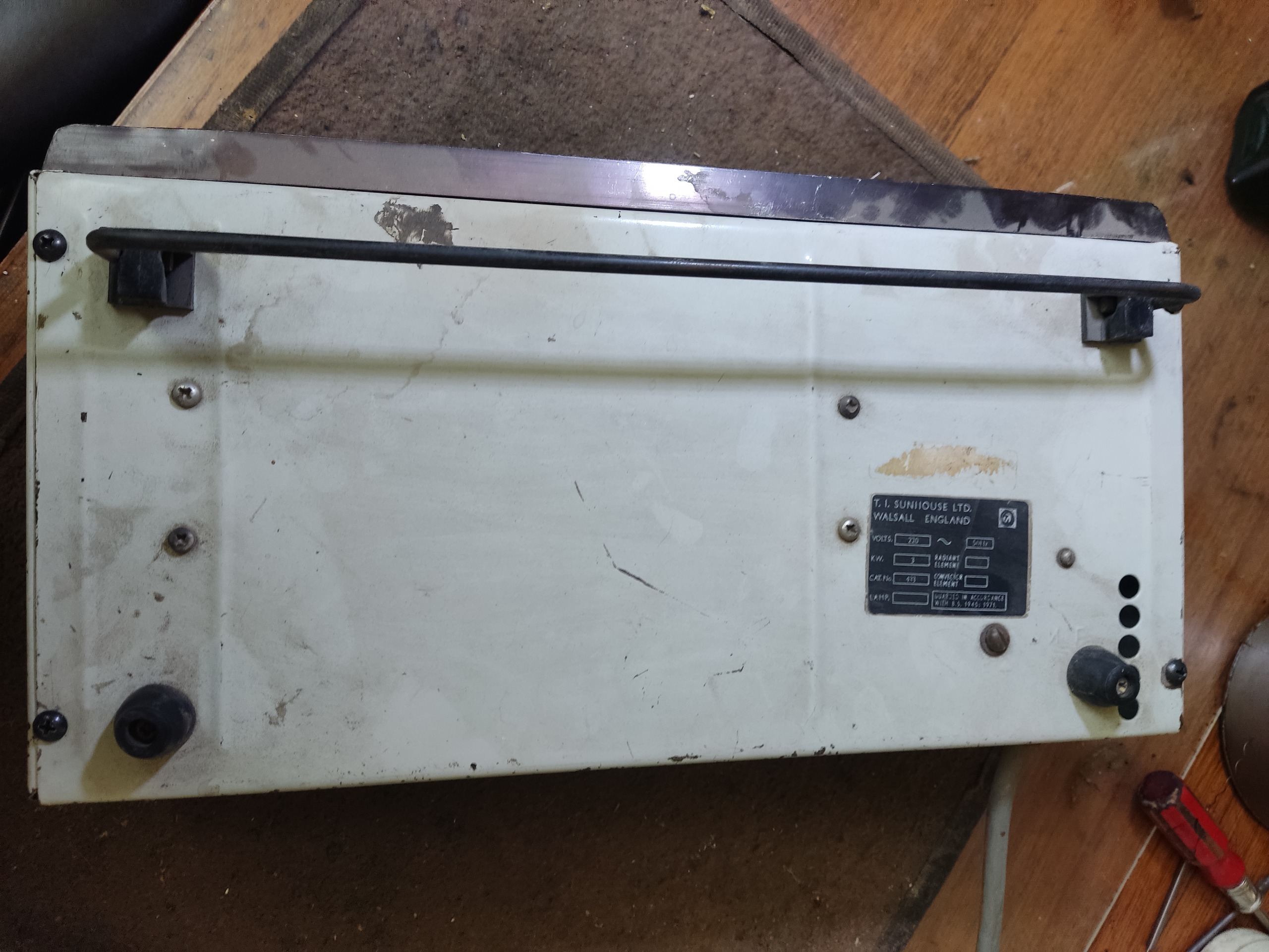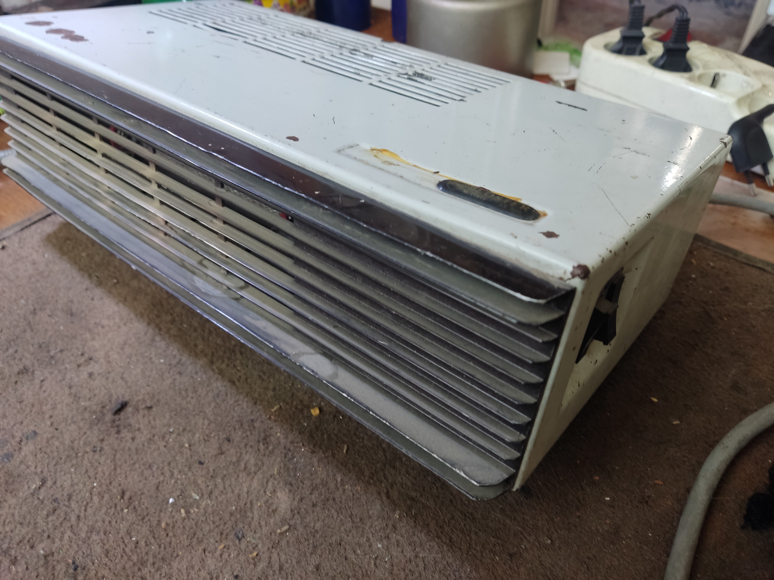بخاری برقی انگلیسی ساخته 1971 طبق برچسب پشت هم بخاری هم پنکه هم سشوار استفاده میشود دارای فن تمام فلزی باتوجه به حساسیت کالا مرجوعی به هیچ عنوان پذیرفته نمیشود
