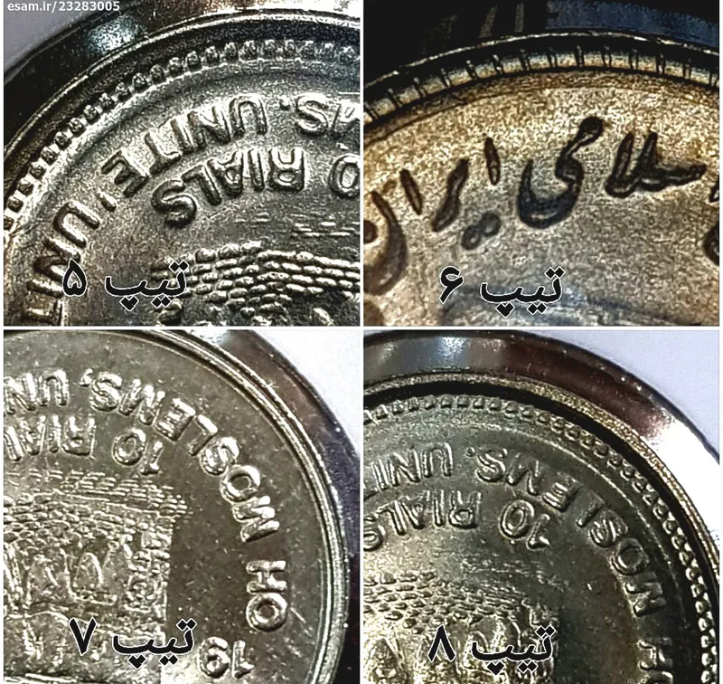 6- ضخامت سکه کوتاه، کنگره داخلی پشت سکه خطهای باریک و بلند و گود