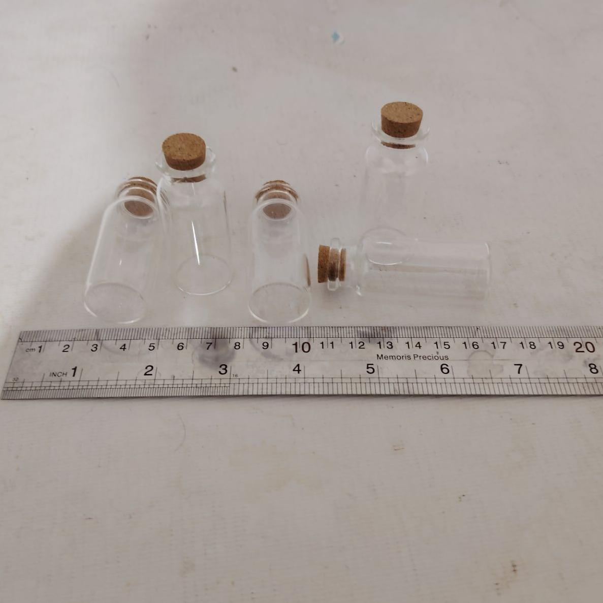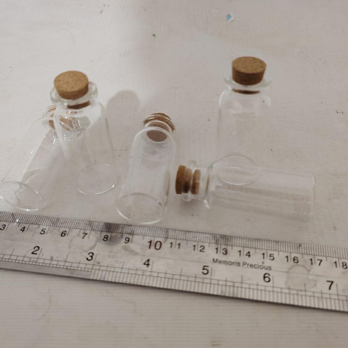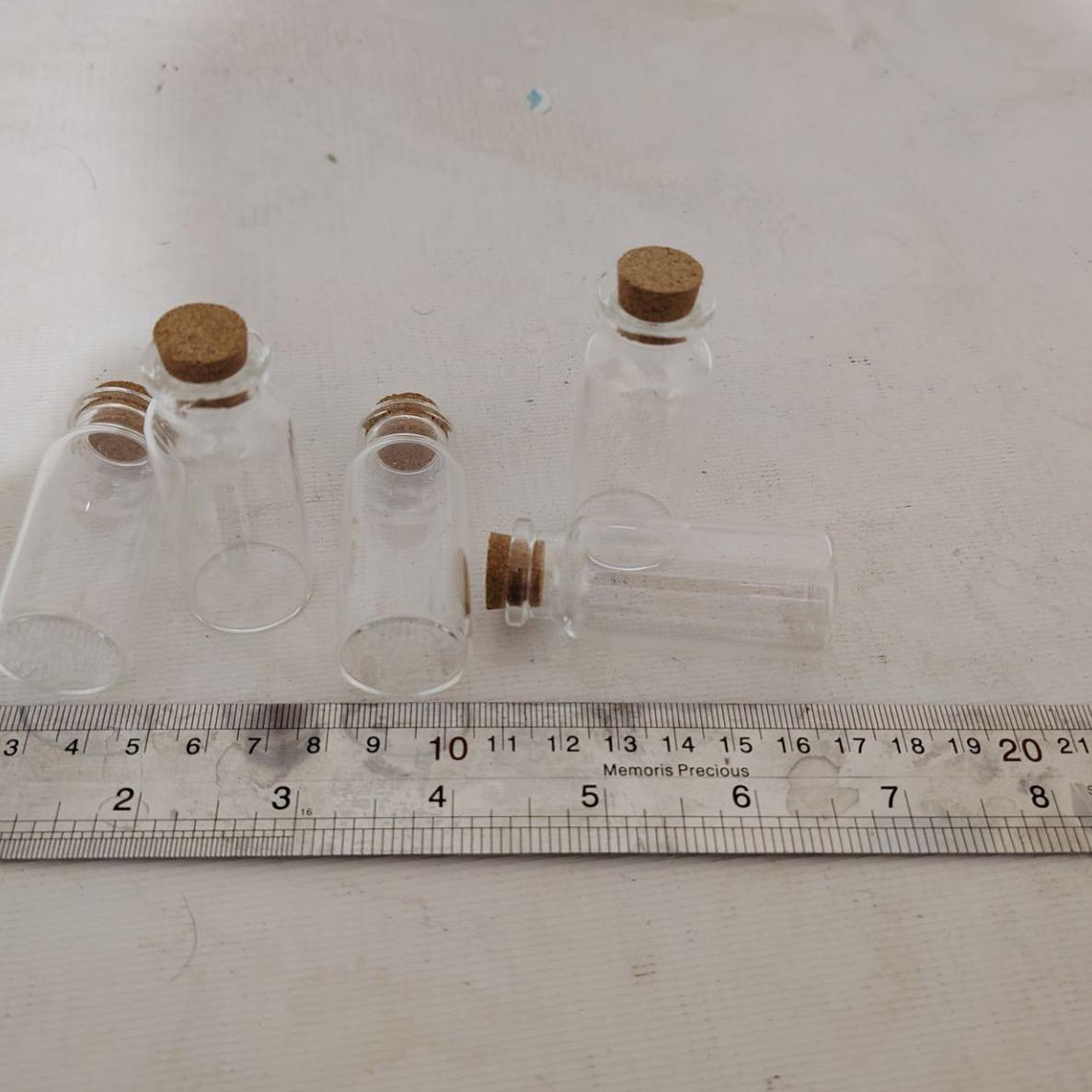 بطری دکوری تزیینی مدل ویال شیشه ای شفاف وزن هر عدد 15 گرم حجم 15 میلی لیتر مناسب تزیین باکس، کتابخانه،هدیه دادن و ساخت رزین به همراه درپوش چوب پنبه ای