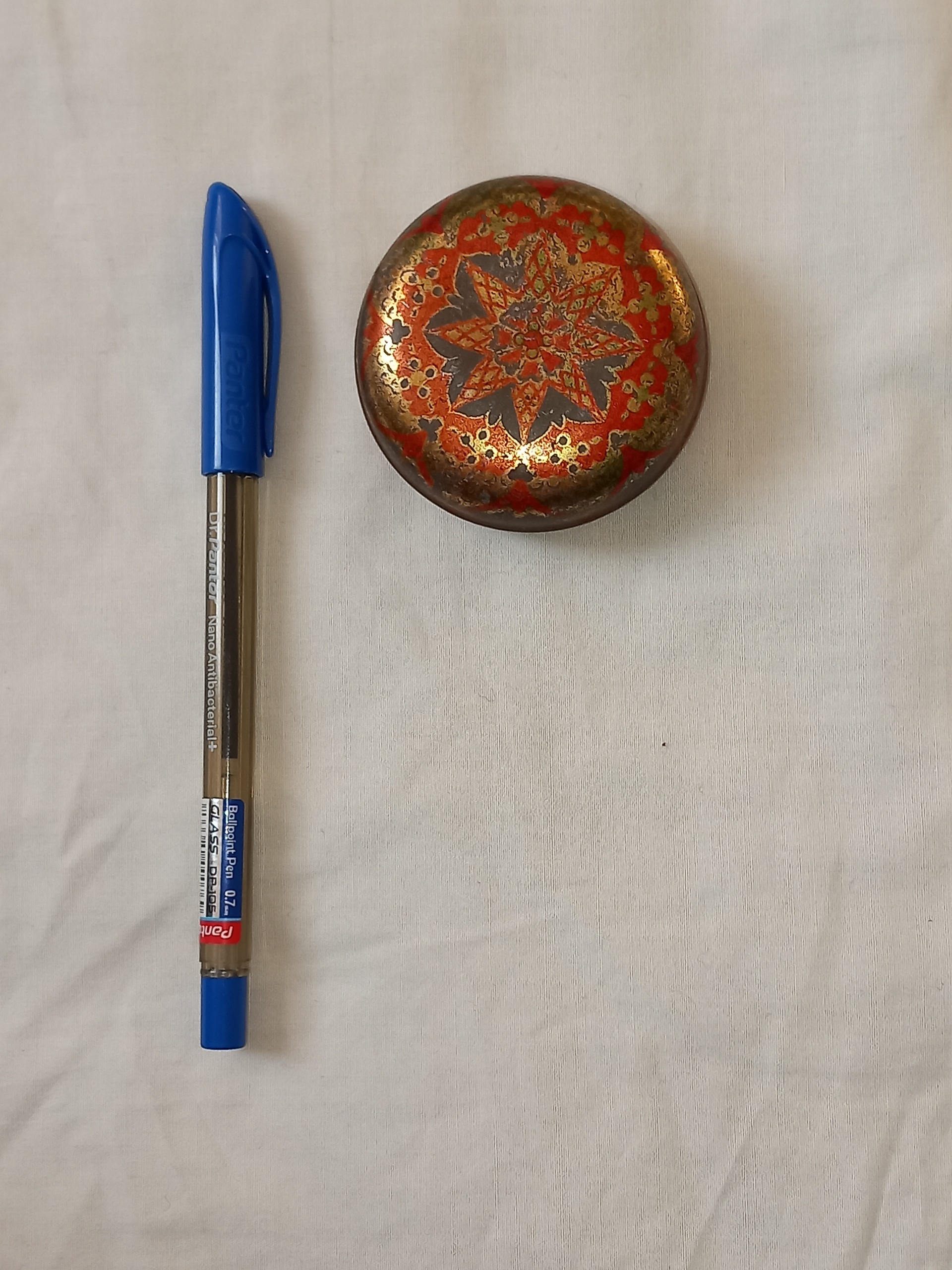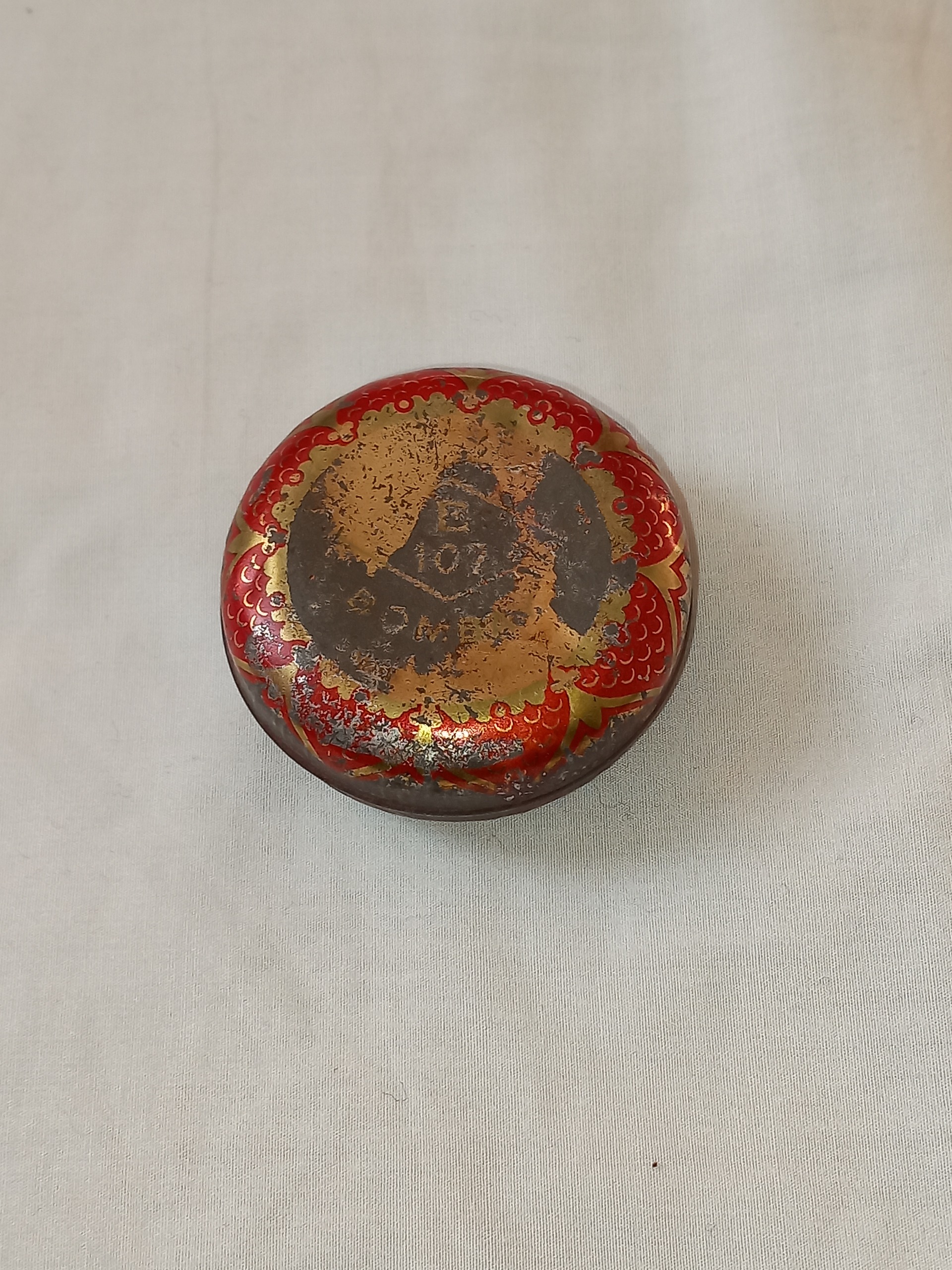 داخل این قوطی سرخاب نگهداری می شده و آهنی است.
