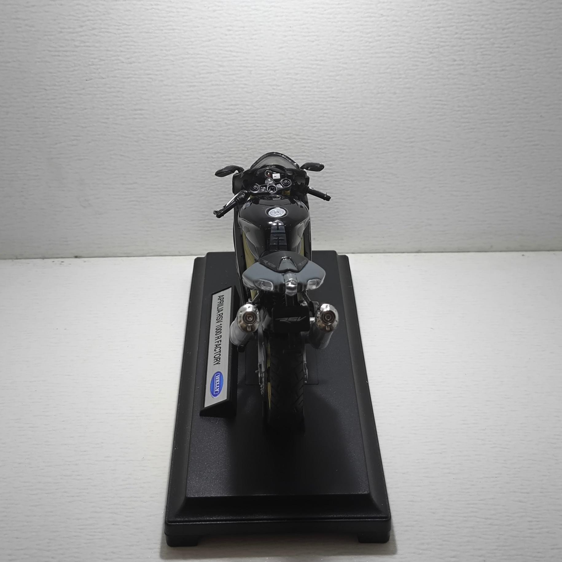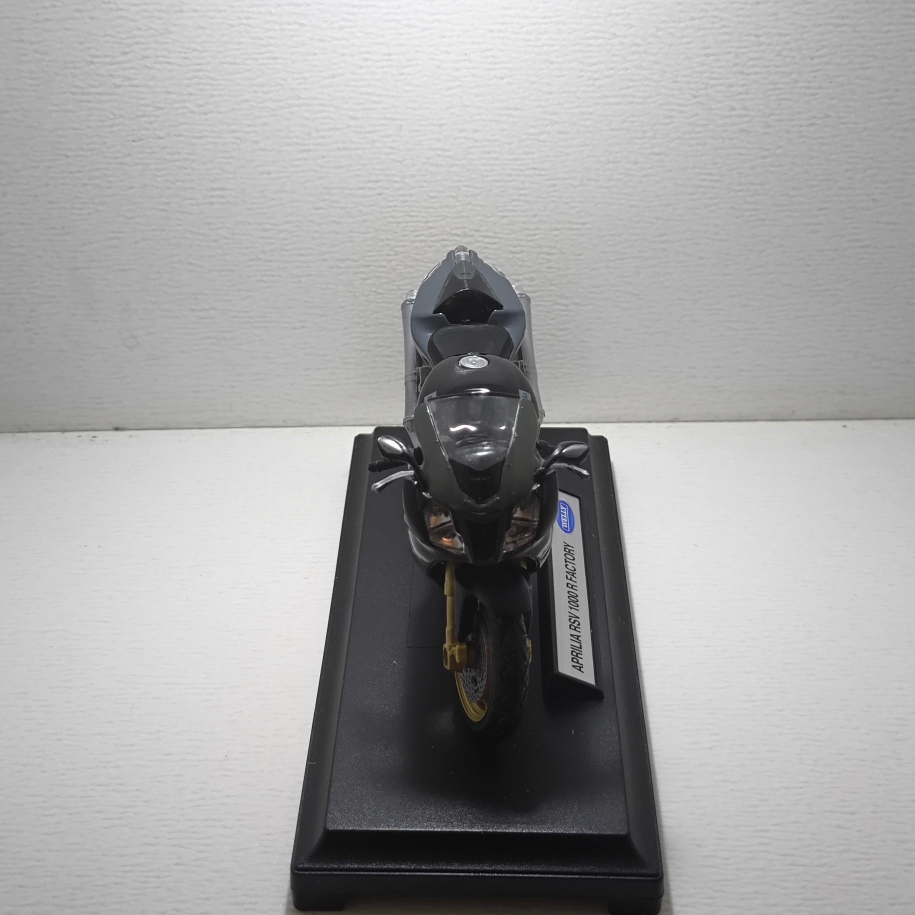 ماکت موتور فلزی آپریلیا1000  رنگ مشکی، کمک عقب، جلو و فرمان متحرک است، برند ویلی، ساخته شده از ترکیب فلز و پلاستیک میباشد،جزئیات موتور به خوبی رعایت شده است، این محصول آماده ارسال است، سفارشات عمده یک هفته طول میکشد