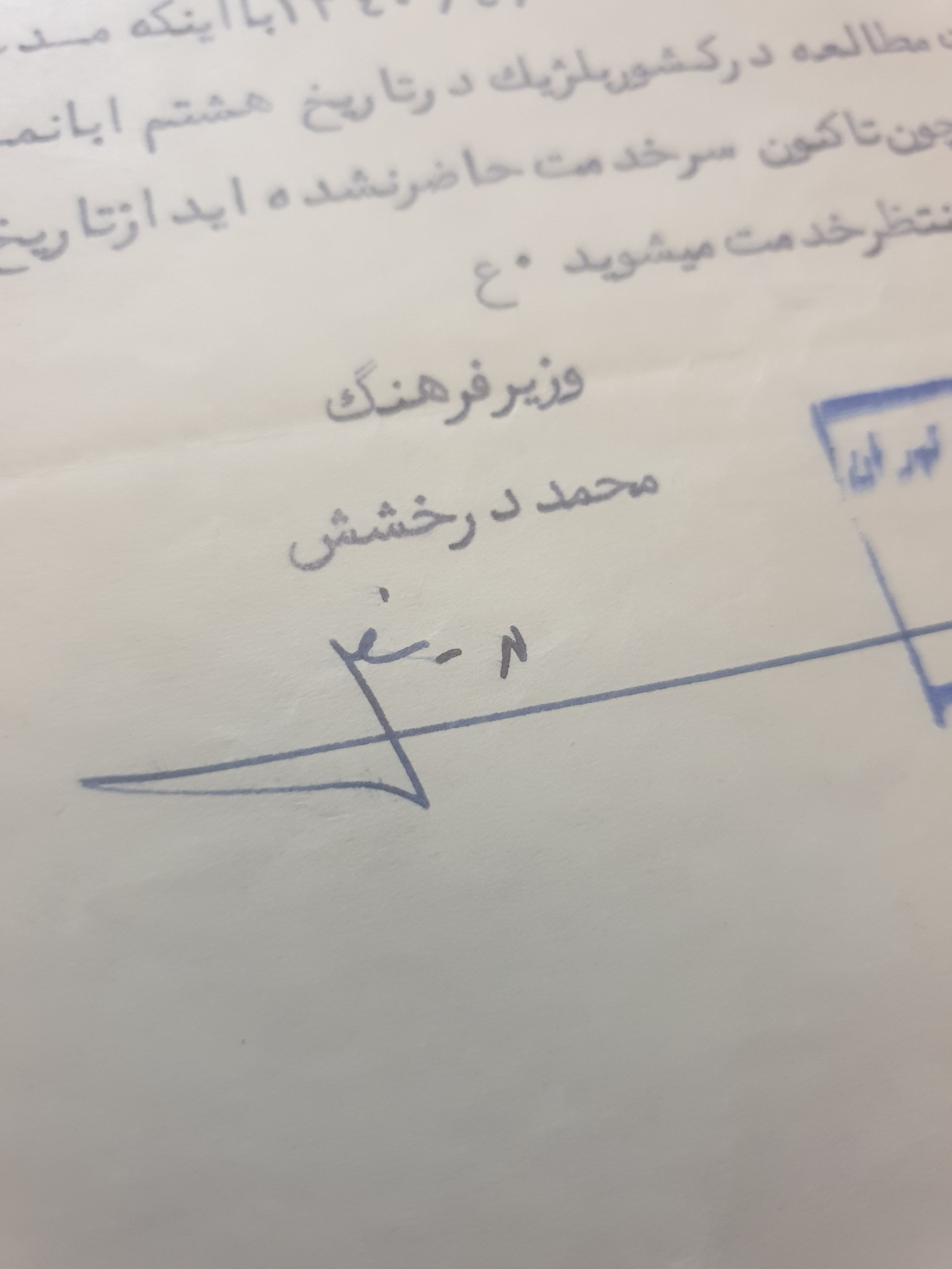 امضا محمد درخشش وزیر فرهنگ